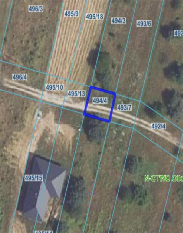 działka - 494/4 Lokalizacja Gmina Olkusz, Zederman Powierzchnia 0, 0115ha Użytki RV - Grunty orne Działka prostokątna o wymiarach około 10 x 12 m.b. bez dostępu do drogi publicznej. Dojazd fizyczny jest możliwy drogą polną. Brak mediów. Grunt nierówny w części wykorzystywany jest jako droga polna