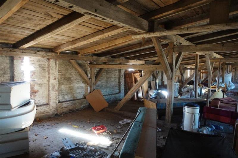 *Budynek gospodarczy, parterowym z poddaszem magazynowym, zblokowany z budynkiem stodoły o konstrukcji drewnianej. Dane techniczne: