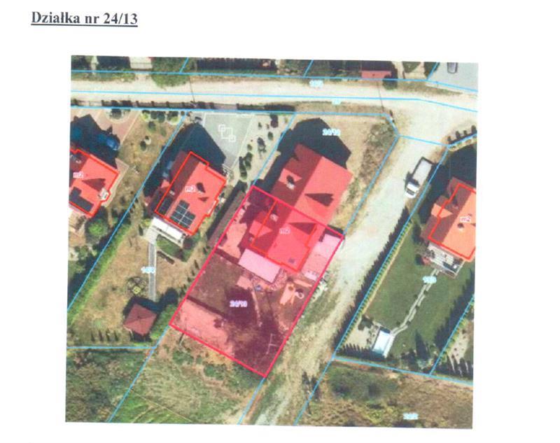 działka numer 24/13 o powierzchni 0,0560 ha zabudowana parterowym, jednorodzinnym, z poddaszem użytkowym, w zabudowie bliźniaczej budynkiem mieszkalnym o powierzchni użytkowej 136,50 m2. Na parterze budynku znajduje się wiatrołap, hol, toaleta, kuchnia, pokój dzienny, schody, kotłownia, garaż, zaś na poddaszu znajduje się hol, cztery pokoje, garderoba oraz łazienka. Instalacje w lokalu: woda - ujęcie miejskie, kanalizacja - kolektor miejski, energia, ogrzewanie gazowe - grzejniki metalowe nowe. Działka posiada dostęp do drogi publicznej. Budynek jest nowy, w trakcie budowy (nie oddany do użytku), żadne z elementów nie wykazują zużycia. Nieruchomość znajduje się na obszarze przeznaczonym na tereny zabudowy mieszkaniowej.