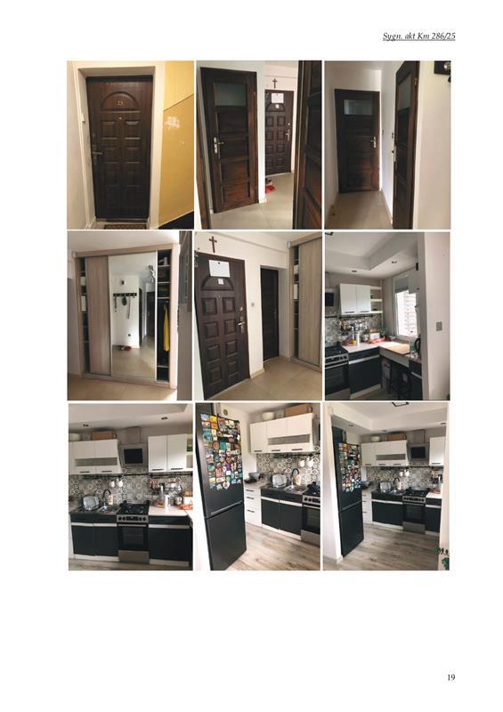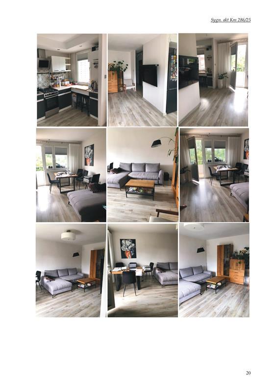Lokal mieszkalny składa się z 3 pokoi, kuchni (kuchnia otwarta, połączona z pokojem), łazienki, wc, przedpokoju oraz loggii i przynależnej komórki (piwnicy) o powierzchni 2,5m2 (powierzchnia lokalu łącznie z piwnicą wynosi 61,04m2).