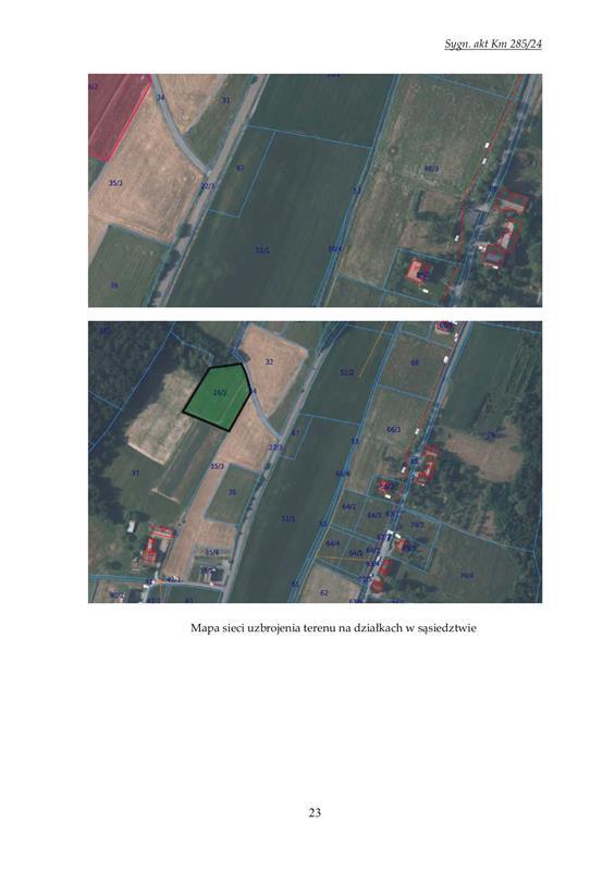 Nieruchomość położona jest w odległości około 3,3 km od Żegociny oraz w odległości od Bochni 24 km. Sąsiedztwo, otoczenie: W sąsiedztwie wycenianej nieruchomości przeważają tereny niezabudowane, rolne, zadrzewione, dalej wzdłuż drogi rozproszona zabudowa. Nieruchomość położona w terenie o atrakcyjnych walorach widokowych. Powierzchnia, kształt, ukształtowanie terenu: Wyceniana nieruchomość składa się z działki ewidencyjnej nr 26/2. Działka o powierzchni 0,3887 ha, o kształcie nieregularnym, położona w terenie o niewielkim nachyleniu w kierunku drogi. Dostęp do drogi publicznej: dojazd od drogi gminnej około 60m drogą asfaltową będącą we władaniu Gminy Żegocina. Zagospodarowanie: działka jest niezabudowana, użytkowana rolniczo. Działka posiada utwardzony wjazd z drogi na teren nieruchomości. Przez teren działki przebiega sieć telekomunikacyjna (na działce 1 słup) Teren nieruchomości nie jest ogrodzony. Dostępność mediów: media w okolicy najbliższych zabudowań około 150-200m - sieci wodociągowa, energetyczna, gazowa (przyjęto na podstawie mapy zasadniczej). Przeznaczenie w miejscowym planie zagospodarowania przestrzennego Gminy Żegocina Obowiązujący plan zagospodarowania przestrzennego - Uchwała CHWAŁA NR IX/54/2011 RADY GMINY ŻEGOCINA z dnia 19 października 2011 r. w sprawie uchwalenia Miejscowego Planu Zagospodarowania Przestrzennego Gminy Żegocina NR VIII/54/2015, zmieniony Uchwałą RADY GMINY ŻEGOCINA z dnia 15 września 2015 roku w sprawie uchwalenia „Zmiany miejscowego planu zagospodarowania przestrzennego gminy Żegocina” Zgodnie z w/w obowiązującym miejscowym planem zagospodarowania przestrzennego działka ewidencyjna nr 26/2 położona jest w terenie: A58 MN, UTL – tereny zabudowy mieszkaniowej jednorodzinnej oraz rekreacji indywidualnej i zbiorowej – turystyczno-letniskowe oraz 2a – tereny Obszaru Chronionego Krajobrazu Zachodniego Pogórza Wiśnickiego, 3a – tereny obszaru funkcjonalnego rekreacji 3d – tereny koncentracji osadnictwa, 6g – tereny ochrony Lokalnego Zbiornika Wód Podziemnych IBŁ - Iwkowa-Bochnia-Łapanów