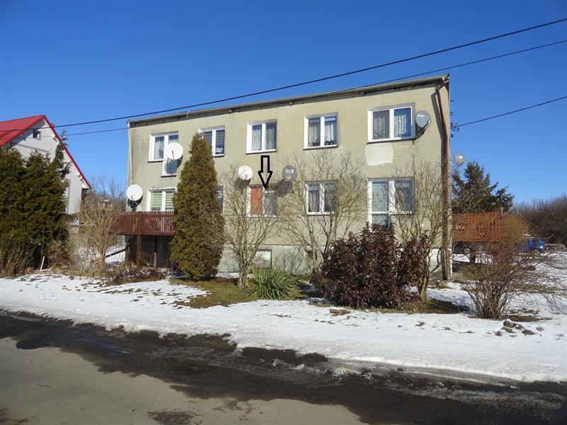 -lokalu stanowiącego odrębną nieruchomość, dla którego prowadzona jest księga wieczysta o nr KW JG1S/00025451/3, położonego w miejscowości Oleszna Podgórska 156/2, gmina Lubomierz wraz z udziałem w wysokości 406/10000 części w nieruchomości wspólnej, którą stanowi prawo współwłasności działki gruntu nr 4/4 o powierzchni 0,0575 ha oraz części budynku i urządzenia, które nie służą wyłącznie do użytku właścicieli lokali, objęte księgą wieczystą o nr KW JG1S/00016930/9. Lokal mieszkalny nr 2 położony jest na I kondygnacji, na wprost korytarza. W skład mieszkania wchodzi jeden pokój, łazienka z wc i przedpokój, o łącznej powierzchni użytkowej 11,70 m2. W lokalu brak jest wydzielonego pomieszczenia kuchennego. Układ funkcjonalny jednostronny, przechodni. Okno wychodzi od strony ulicy. Nieruchomość posiada pośredni dostęp do drogi publicznej (dz. nr 237 dr) poprzez działkę nr 4/6, która okala działkę nr 4/4 z trzech stron, stanowi podwórko przy budynku, z trawnikami, nasadzeniami drzewek i krzewów ozdobnych oraz miejscami parkingowymi. Nieruchomość nie posiada bezpośredniego dostępu do drogi publicznej. Działka nr 4/4 przylega wprawdzie jednym bokiem do działki drogowej nr 237 dr, ale wejście do budynku odbywa się poprzez działkę nr 4/6, która okala działkę nr 4/4 dookoła. Zatem dostęp do drogi publicznej (dz. nr 237 dr) istnieje poprzez działkę nr 4/6, w której dłużnik posiada udział ułamkowy. Ponadto dłużnik posiada także udział ułamkowy w działce nr 4/5 zabudowanej budynkiem gospodarczym, znajdującym się za budynkiem mieszkalnym. Lokal mieszkalny nr 2 powinien być zbywany razem z udziałem w działce nr 4/6 objętej odrębną księgą wieczystą, w celu zapewnienia dostępu do drogi publicznej. Wskazana jest także sprzedaż udziału w działce nr 4/5 zabudowanej budynkiem gospodarczym.