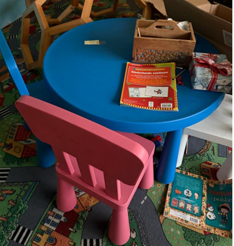 | 34 | Stolik dziecięcy plastikowy (niebieski) + 3 krzesła | 1 | 25,00 zł 20,33 zł netto + 23% VAT | 18,75 zł* | 1,00 zł |