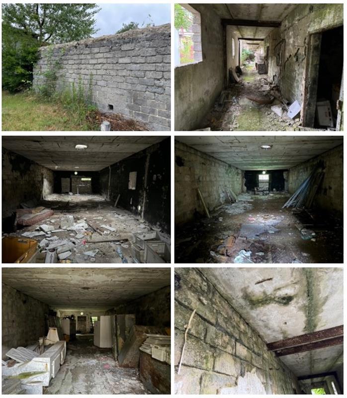 Na przedmiotowej działce znajduje się budynek magazynowo-produkcyjny parterowy wzniesiony w technologii tradycyjnej murowanej. Ściany murowane z pustaków gazobetonowych, stropy żelbetowe, stolarka drewniana wybrakowana. W stropie nad parterem otwory wentylacyjne. W szczelinach stropu rosnące drzewa, krzewy i trawa. W budynku pozostałości po zdekompletowanej instalacji elektrycznej. Budynek nieużytkowany. Teren wokół budynku jest niezagospodarowywany. Nieruchomość stanowi własność dłużnika: