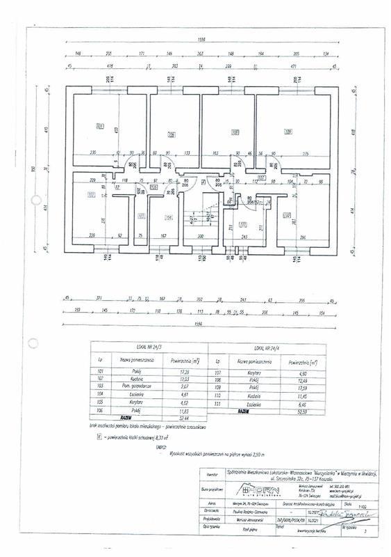 UWAGI: Występuje niezgodność pomiędzy danymi ujawnionymi w księdze wieczystej, a danymi uzyskanymi od zarządcy nieruchomości dotycząca opisu i powierzchni lokalu mieszkalnego. Na podstawie pomiarów kontrolnych lokalu mieszkalnego położonego na niższej kondygnacji, przyjęto powierzchnie użytkową 52,44 m2.