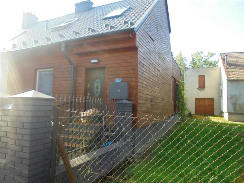 Budynek mieszkalny znajdujący się na powyższej działce jest budynkiem drewnianym, parterowym, niepodpiwniczonym, z poddaszem użytkowym, w zabudowie bliźniaczej, o tradycyjnej drewnianej konstrukcji dachowej krytej blachą, wspólnie z budynkiem sąsiednim, orynnowanie pcv. Ściany zewnętrzne obite deską elewacyjną. Stolarka okienna pcv, stolarka drzwiowa tradycyjna drewniana. Budynek ogrzewany za pomocą grzejników stalowych płytowych zasilanych z pieca dwufunkcyjnego, dodatkowo na poziomie poddasza w części pomieszczeń ogrzewanie elektryczne.