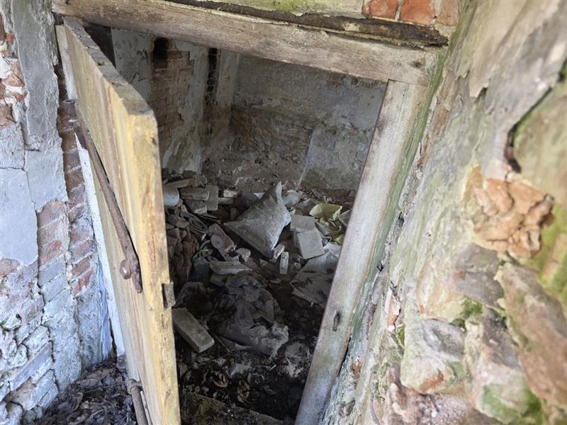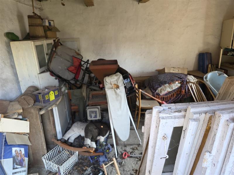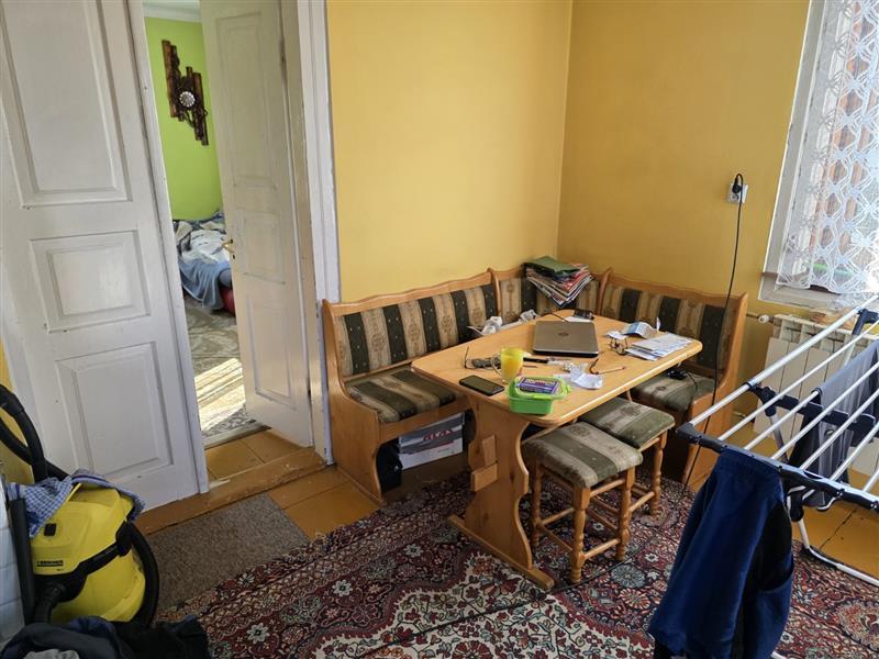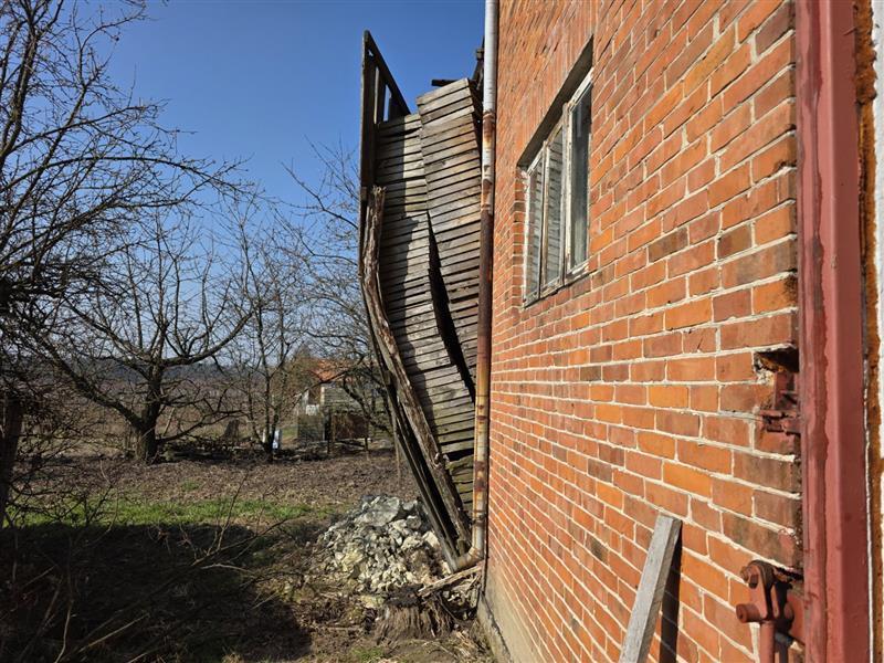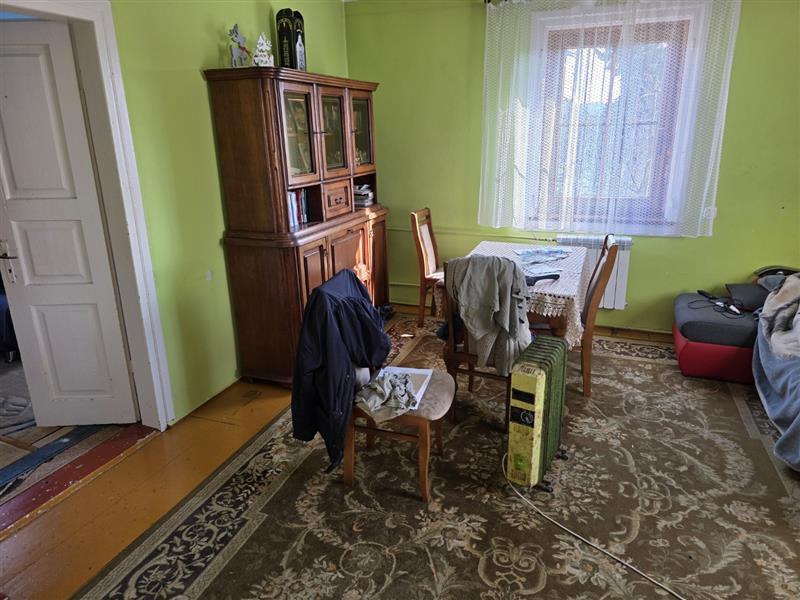 Budynek parterowy podpiwniczony, brak danych o dacie budowy. Wg informacji udzielonych w trakcie oględzin budynek w wieku 80 lat. Budynek o rzucie zbliżonym do kwadratu. Do piwnicy wejści z przedsionka wejściem w podłodze, w piwnicy o wysokości 1,7m -1,8m kotłownia z piecem na paliwo stałe i pomieszczenia gospodarcze, powierzchnia 49,96m2. Na parterze ganek, kuchnia, łazienka z wc, korytarz, dwa pokoje mieszkalne, wejście schodami betonowymi. Powierzchnia zabudowy Pz= 66m2, Powierzchnia użytkowa Pu = 55,93 m2 konstrukcja budynku: Fundamenty betonowe, ściany fundamentowe murowane, Ściany zewnętrzne - drewniane, Strop nad piwnicą wylewany, Dach- konstrukcji drewnianej kryty blachą płaską, Posadzki - deski drewniane, terakota, w piwnicy posadzka betonowa i ziemna. Ściany tynkowane i malowane, w łazience i częściowo w kuchni glazura. Okna PCV. W kuchni piec kuchenny, w łazience kabina prysznicowa z bolierem elektrycznym. W budynku instalacje: wodociągowa, kanalizacyjna do szamba usytuowanego na działce sąsiedniej, elektryczna, centralnego ogrzewania z pieca węglowego.
