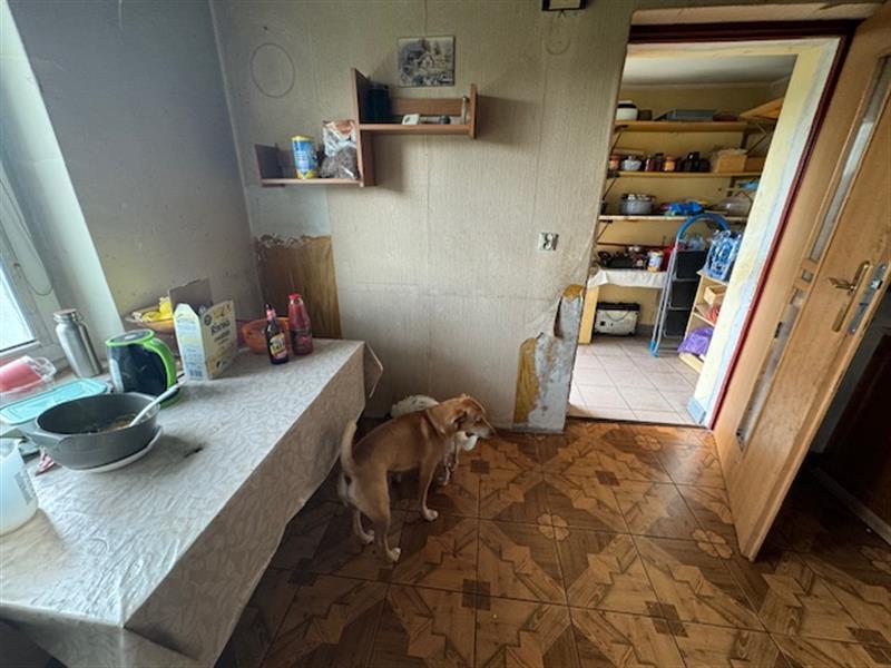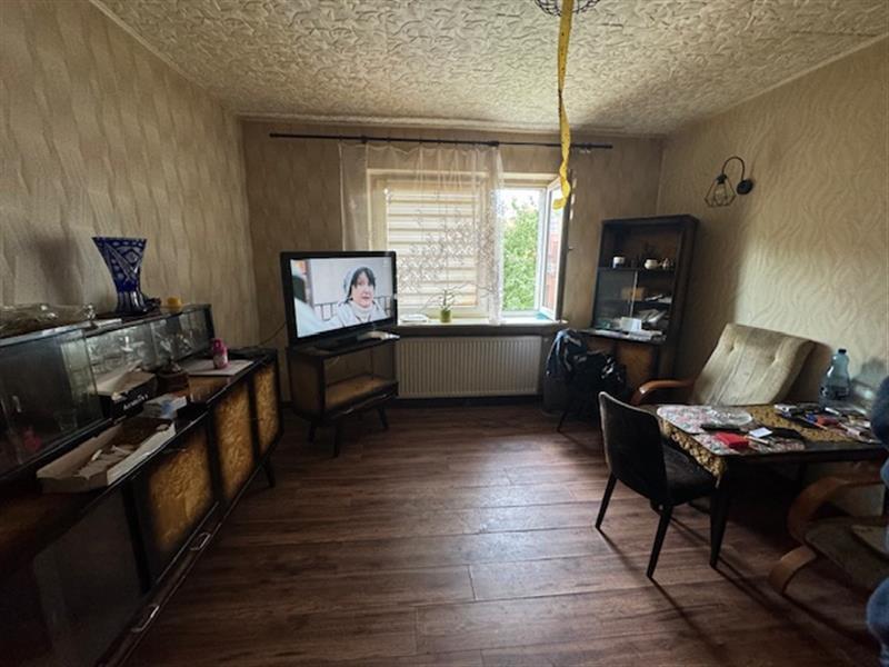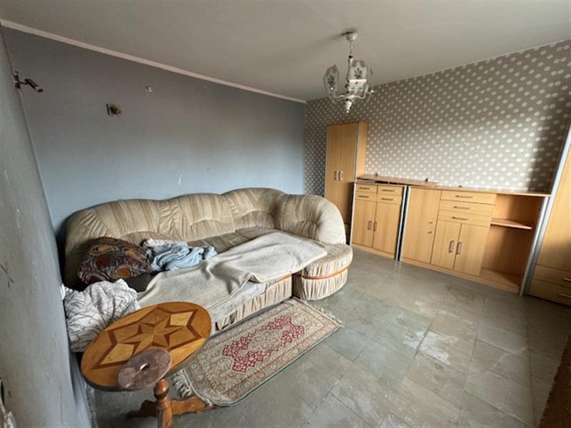 Na przedmiotowej nieruchomości gruntowej posadowiony jest dwukondygnacyjny budynek mieszkalny jednorodzinny, z podpiwniczeniem, w zabudowie bliźniaczej. Budynek wzniesiony został w technologii tradycyjnej murowanej w roku 1966 roku. Powierzchnię użytkową budynku określono na poziomie 105,80 m2. Powierzchnia określona na podstawie obmiarów rzeczoznawcy majątkowego dokonanych dalmierzem elektronicznym. Okna PCV , podłogi wyłożone panelami MDF i terakotą w kuchni i w łazience . Ściany malowane oraz tapetowane. Dom ogrzewany poprzez piec na drewno , znajdujący się w piwnicy. Kaloryfery kompaktowe. Dach płaski , kryty papą. Tynki wewnętrzne cementowo-wapienne, sufity pokryte tynkiem, miejscowo wyłożone kasetonami styropianowymi. Drzwi wewnętrzne z płyty mdf, stare. Schody lane, wyłożone lastriko. Budynek jest w złym stanie technicznym. Obiekt od lat nie jest remontowany, brak jest izolacji pionowych i poziomych. Dach zacieka. Ściany są zawilgotniałe, zagrzybiałe, sufity pozalewane, tynki rozwarstwione. Ściany i stropu popękane. W piwnicy, podczas ulewy zbiera się woda. Normatywna wysokość pomieszczeń.