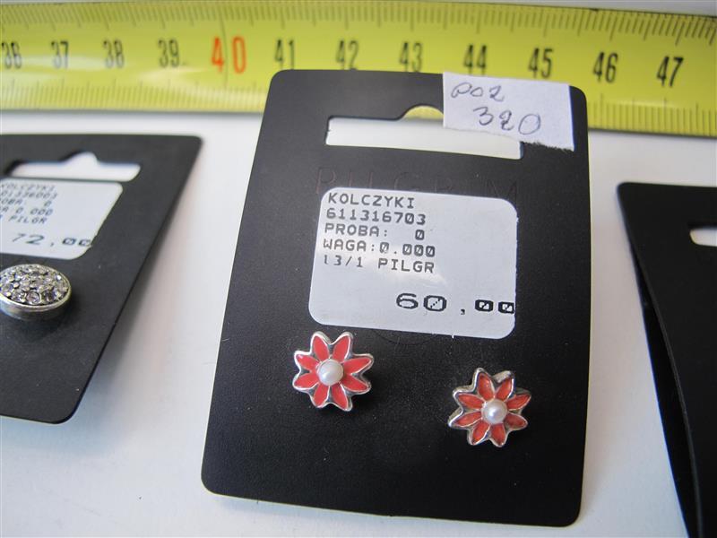 | 25 | Kolczyki ozn. prod. 601330003, marka PILGRIM, metal+szkło, A847132 | 18,00 zł 14,63 zł netto + 23% VAT | 13,50 zł* | 1,00 zł |