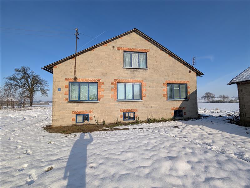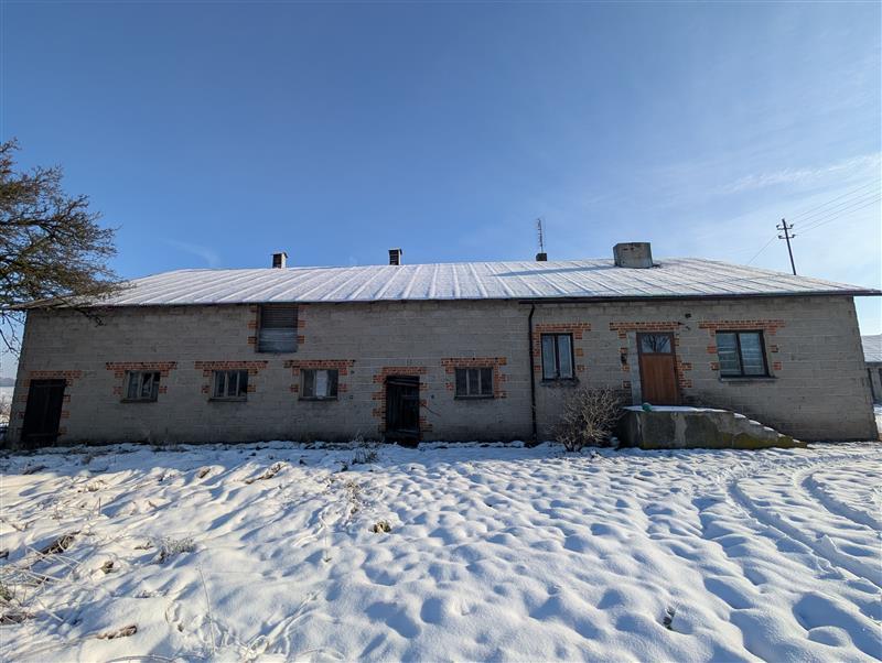 Działka zabudowana 9/4 powierzchnia 2,0380 ha – użytek: Br-RV - 0,1800 ha; ŁV – 0,3864 ha; PsV - 0,4364 ha; RV - 0,8302 ha; RVI - 0,2050 ha;, dojazd drogą publiczną, asfaltową. Działka jest nieregularnych kształtów ze skosem w końcowej granicy, szeroka od drogi około 58 m, na głębokości około 352 m. Działka to teren płaski. Działka posiada dostęp do energii elektrycznej, wiejskiej sieci wodociągowej – przez działkę (poprzecznie) przebiega linia energetyczna. Wodociąg przebiega od drogi do samego budynku mieszkalnego w środkowej części działki. Na terenie nieruchomości znajduje się betonowe szambo. Na działce posadowiony jest murowany budynek mieszkalny zespolony z budynkiem gospodarczym - oborą, murowany budynek gospodarczo-inwentarski. Działka graniczy z działkami niezabudowanymi, nie jest ogrodzona. Główny plac przy budynku nie jest utwardzony. Na działce występują nasadzenia drzew i krzewów niskopiennych. Duża część działki obsiana jest zbożem i żytem. Na terenie działki znajduje się stara studnia. OPIS budynku mieszkalnego: Dom mieszkalny jednorodzinny, budynek został wzniesiony w latach 60 – brak dokumentacji projektowej – z informacji Pani Stefani Matuszkiewicz budowany w systemie gospodarczym przez zmarłego męża. Budynek jest parterowy z niewykończonym strychem w stanie surowym. Budynek posiada niskie piwnice, gdzie zlokalizowany jest piec zasilający instalację grzewczą. Fundamenty betonowe. Ściany nośne o konstrukcji murowanej z bloczków betonowo -żużlowych. Dach - dwuspadowy o konstrukcji drewnianej, pokryty blachą falistą – do wymiany, całkowite skorodowanie. Brak obróbek blacharskich, rynien i rur spustowych. Komin jest murowany otynkowany – wymagający remontu. Elewacja zewnętrzna jest nieocieplona i nieotynkowana. Stolarka zewnętrzna to okna drewniane starego typu, drzwi wejściowe z tłoczonej blachy. Budynek jest podłączony do wody czerpalnej z wodociągu wiejskiego. Ścieki odprowadzane są do zbiornika bezodpływowego – betonowego szamba. Do budynku doprowadzona jest instalacja elektryczna - napowietrzna. W budynku mieszkalnym są grzejniki żebrowe z blachy, piec na węgiel/drewno. BUDYNEK OBORY ma powierzchnię zabudowy łącznie z budynkiem mieszkalnym 302 m2. Jest murowany z bloczków betonowo – żużlowych. Dach – konstrukcja drewniana, dwuspadowy pokryty blachą falistą - mocno skorodowaną. Drzwi i wrota wjazdowe są z desek drewnianych. Budynek z lat 60. Stan budynku średni.