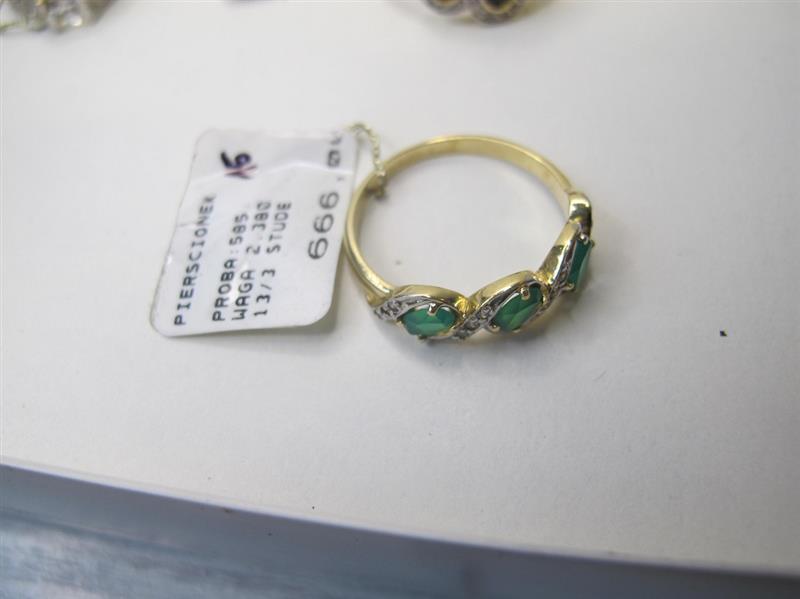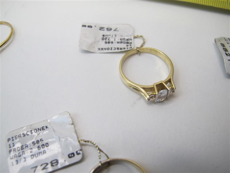 | 10 | Pierścionek złoty z kamieniami jubilerskimi ozdobnymi, próba 585, waga 2,79; A735301 | 840,00 zł 682,93 zł netto + 23% VAT | 630,00 zł* | 32,00 zł |