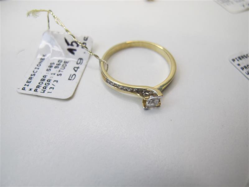 | 15 | Pierścionek złoty z kamieniami jubilerskimi ozdobnymi, próba 585, waga 1,94; A808836 | 770,00 zł 626,02 zł netto + 23% VAT | 577,50 zł* | 29,00 zł |