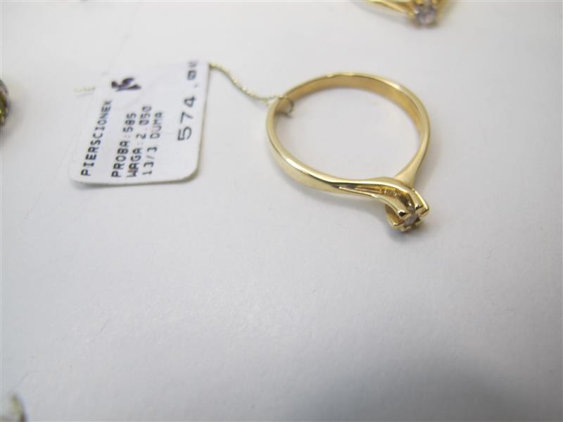 | 72 | Pierścionek złoty z kamieniem jubilerskim ozdobnym, próba 585, waga 2,6; A704183 | 910,00 zł 739,84 zł netto + 23% VAT | 682,50 zł* | 35,00 zł |