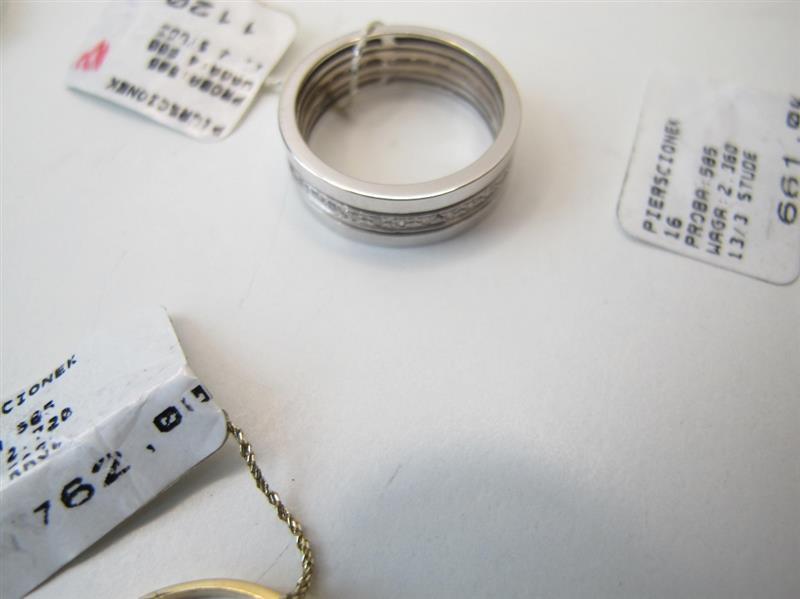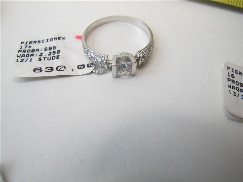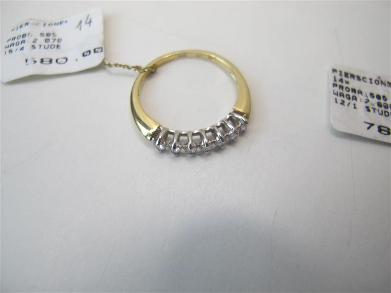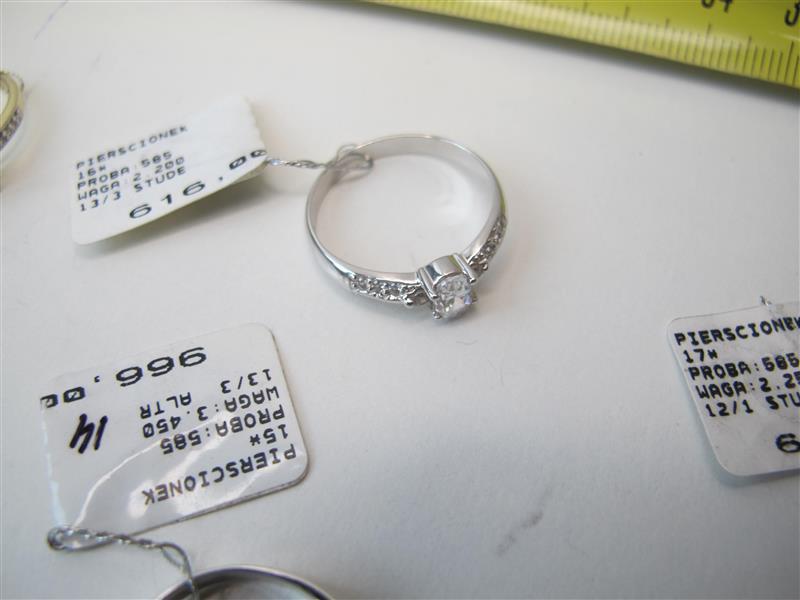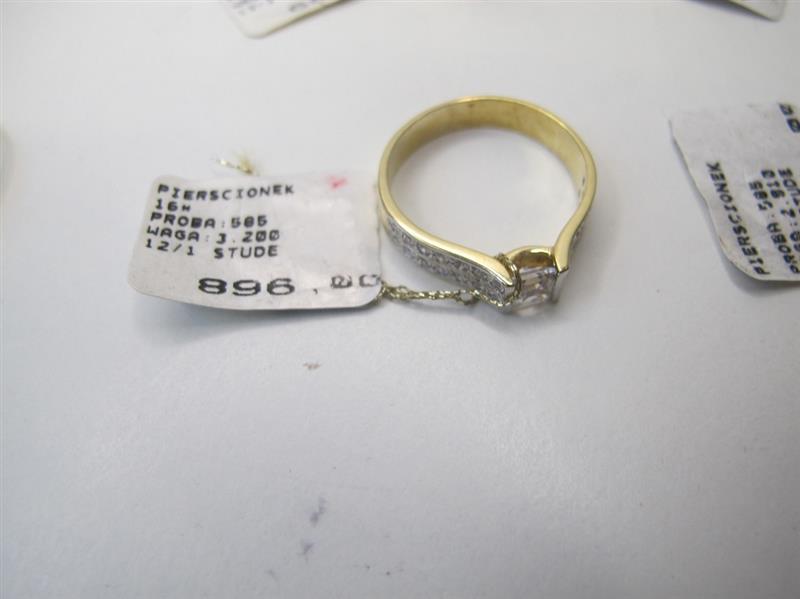 | 12 | Pierścionek złoty z kamieniami jubilerskimi ozdobnymi, próba 585, waga 2,34; A831333 | 840,00 zł 682,93 zł netto + 23% VAT | 630,00 zł* | 32,00 zł |