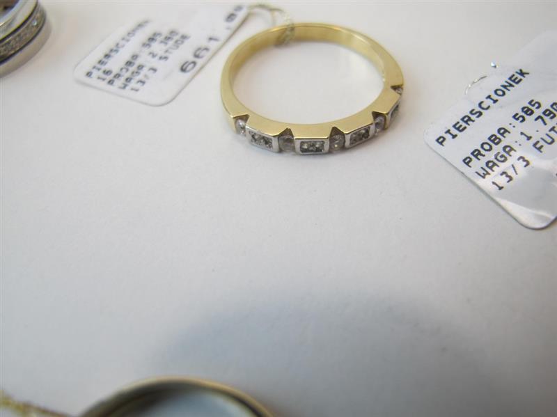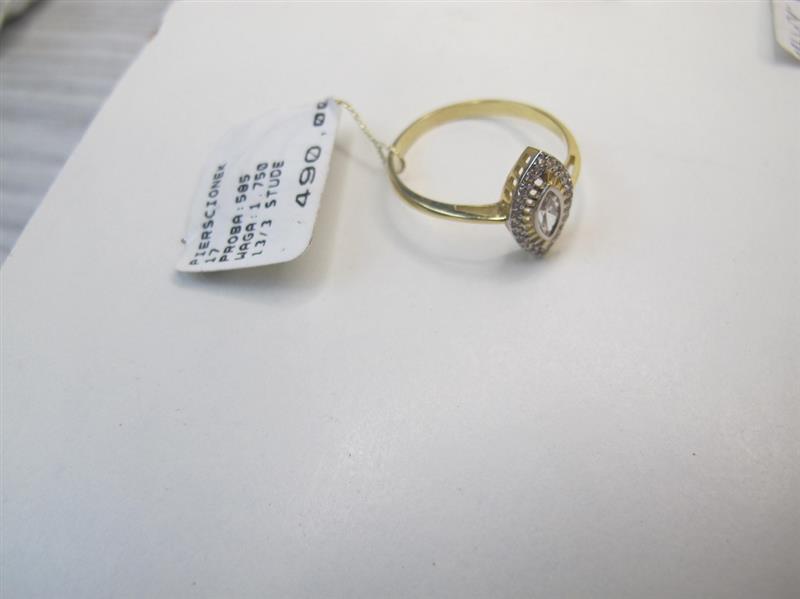 | 14 | Pierścionek złoty z kamieniami jubilerskimi ozdobnymi, próba 585, waga 1,99; A797350 | 700,00 zł 569,11 zł netto + 23% VAT | 525,00 zł* | 27,00 zł |