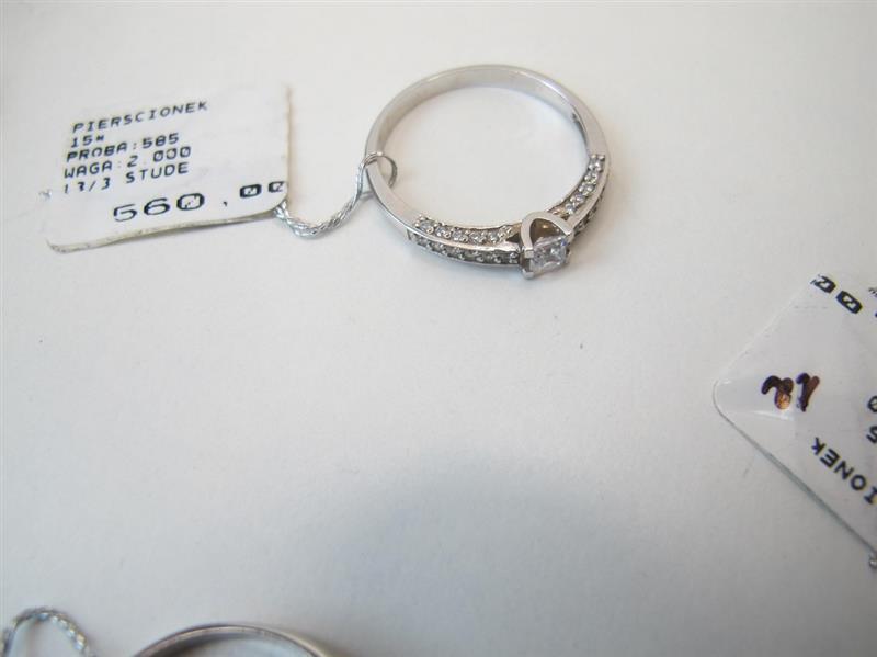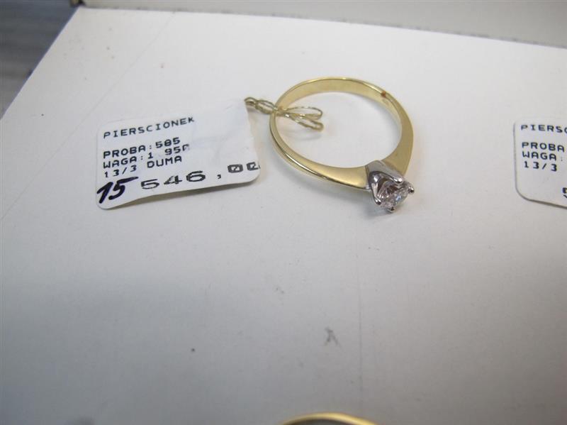 | 59 | Pierścionek złoty z kamieniami jubilerskimi ozdobnymi, próba 585, waga 3,75; A417845 | 1 260,00 zł 1024,39 zł netto + 23% VAT | 945,00 zł* | 48,00 zł |