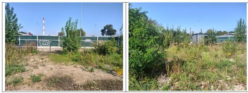 W granicy działki odnotowano pozostałości budynku – zachowana jest jedna murowana ściana z czerwonej cegły. Ściana wymaga zabezpieczenia lub rozbiórki ze względu na zaawansowane zużycie techniczne. Teren nie jest