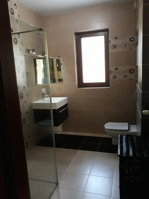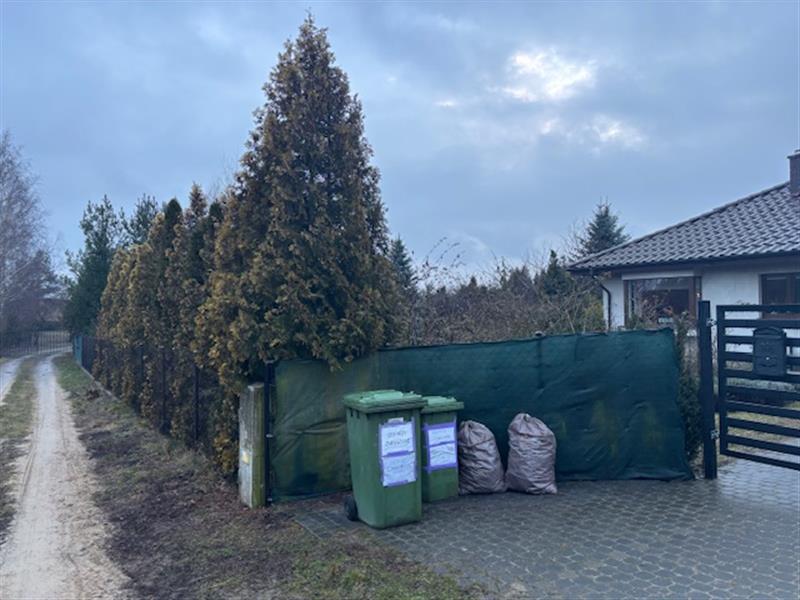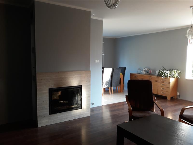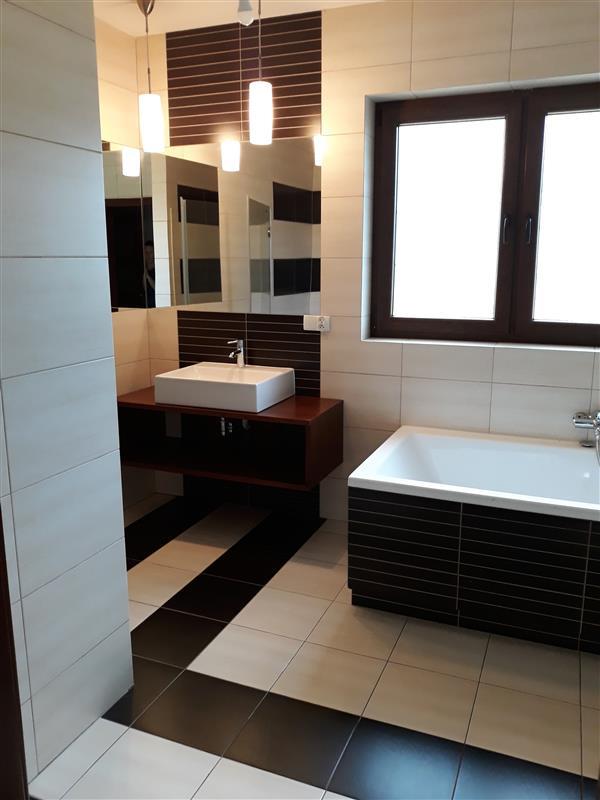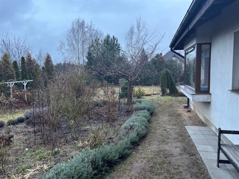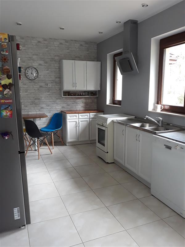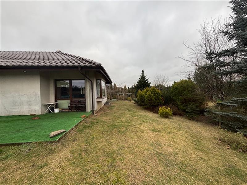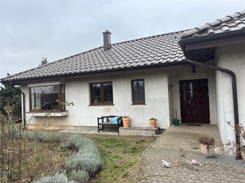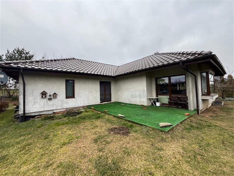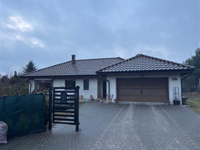 Przedmiotem licytacji jest ułamkowa część (udział 1/2 części) nieruchomości gruntowej, na którą składa się działka gruntu nr 2016/4 o pow. 0,3002 ha. Kształt działki zbliżony do kwadratu. Konfiguracja terenu płaska. Płot z siatki metalowej z metalową, przesuwną bramą i furtką. Podjazd do garażu i do drzwi wejściowych utwardzony kostką betonową. Urządzony ogród z drzewami i krzewami ozdobnymi, trawniki a także warzywnik z foliowym tunelem. Działka zabudowana budynkiem mieszkalnym z 2008 r., jednorodzinnym, wolnostojącym, parterowym ze strychem, częściowo podpiwniczonym o pow. użytkowej 174,00 m2 i pow. zabudowy z tarasami 225,20 m2. Budynek murowany w technologii tradycyjnej na fundamentach z ław żelbetowych i ścianach fundamentowych murowanych z bloczków betonowych. Ściany zewnętrzne murowane z pustaka gazobetonowego, styropian o grubości 10 cm. Ściany kominowe murowane z cegły ceramicznej. Nadproża prefabrykowane, wieniec i strop żelbetowe. Dach o konstrukcji drewnianej, ocieplenie z wełny mineralnej, pokryty dachówką ceramiczną. Stolarka drzwiowa drewniana. Stolarka okienna PCV. Brama garażowa automatyczna na pilota. Dostępne instalacje: energetyczna, wodociągowa i kanalizacyjna (przydomowa oczyszczalnia ścieków, instalacja kanalizacji deszczowej z wkopanym w ziemię betonowym zbiornikiem 3000 l), centralne ogrzewanie (podłogowe w korytarzu, wiatrołapie, salonie, kuchni i łazienkach). piec na ekogroszek, rekuperacja - urządzenie zlokalizowane w piwnicy. Układ funkcjonalny: wiatrołap, korytarz, 2 łazienki, kuchnia, salon z jadalnią, 3 pokoje, garaż. Podłogi w salonie z jadalnią i pokojach panele, a w pozostałych pomieszczeniach płytki ceramiczne. Ściany w łazienkach obłożone płytkami ceramicznymi, a w pozostałych pomieszczeniach malowane farbą emulsyjną. W salonie z jadalnią w kuchni i w korytarzu tapeta ścienna na jednej ścianie. W pokojach zabudowa meblowa na wymiar, w salonie kominek, w łazienkach misy wc, umywalki, kabina prysznicowa i wanna.