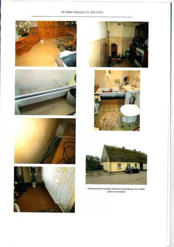 https://drive.google.com/file/d/1pcdaWqZ-heeC_40OJw4EoEBBDsK9VbDQ/view?usp=sharing Licytowana nieruchomość położona jest w Mierzynku 11A - obręb Salinko. Dojazd do nieruchomości z istniejącej drogi oznaczonej nr ew. 66/55 i nr 66/56 – działki stanowią własność gminy i w planie zagospodarowania przestrzennego oznaczone są jako drogi wewnętrzne. Bezpośrednie sąsiedztwo nieruchomości stanowią podobne domy jednorodzinne, działki niezabudowane. W odległości ok. 110-130 m znajduje się brzeg jeziora Salińskiego. W skład nieruchomości zabudowanej wchodzi działka gruntu nr 66/18 obszaru 377 m2zabudowana budynkiem mieszkalnym w zabudowie zwartej (jedna czwarta budynku typu czworak) oraz budynkiem gospodarczym. Nieruchomość wyposażona w sieci: energetyczną, wodociągową, kanalizacyjną. Działka nieregularnego kształtu. Część południowa działki – niezabudowana jest wykorzystywana jako ogród – teren porośnięty trawą, roślinnością ozdobną i użytkową. Budynek mieszkalny jest obiektem parterowym ze strychem - ściany murowane, strop nad parterem drewniany, dach konstrukcji drewnianej kryty eternitem. Ściany zewnętrzne bez docieplenia od zewnątrz. Elewacja otynkowana i malowana. Brak danych co do okresu budowy budynku. Budynek wyposażony jest w instalacje: elektryczną, wodociągową, kanalizacyjną, grzewczą - ogrzewanie etażowe (piec na drewno/ węgiel znajduje się w kuchni). W budynku znajdują się dwa pokoje, kuchnia, łazienka i korytarz. Kuchnia oraz jeden z pokoi są pomieszczeniami przechodnimi. W pierwszym pokoju podłoga wyłożona panelami, ściany w części malowane, w części obłożone tapetami. W drugim pokoju podłoga wyłożona płytami pilśniowymi, ściany malowane. Na ścianie zewnętrznej, narożniku, w strefie przypodłogowej widoczne zawilgocenie. W kuchni podłoga jest wyłożona płytkami terakoty, ściany w części obłożone glazurą, a w części malowane. W łazience podłoga wyłożona linoleum, ściany malowane. W łazience znajduje się bojler na ciepłą wodę. Wyposażenie łazienki: wanna, sedes, umywalka. Tynki na trzcinie. Okna pcv, drzwi wewnętrzne płycinowe. Strop nad parterem drewniany – w pokojach uginają się sufity. Elementy wykończeniowe w zadawalającym stanie, podstawowy standard. Stan techniczny oraz standard budynku ustalono jako zadawalający. powierzchnia użytkowa budynku: 52,70 m2 (pokój 1: 17,70, pokój 2: 17,40, kuchnia: 9,90, korytarz: 4,50, łazienka: 3,20) Budynek gospodarczy jest obiektem parterowym w zabudowie bliźniaczej. Ściany murowane (z górna częścią drewnianą), dach konstrukcji drewnianej. Budynek w zadawalającym stanie. Powierzchnia zabudowy budynku gospodarczego z danych ewidencji budynków: 45 m2
