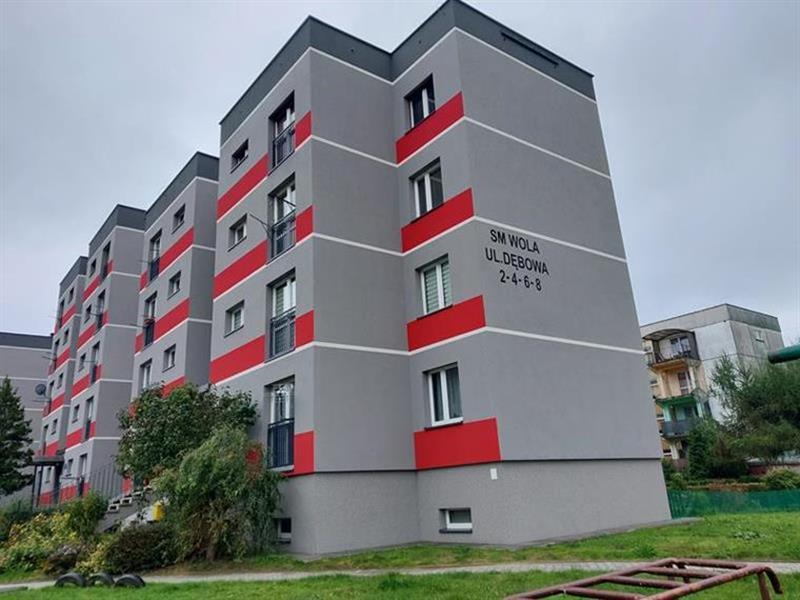 lokal mieszkalny nr 16 o pow. 36,80 m2. Lokal składa się z pokoju, aneksu sypialnego, aneksu kuchennego, łazienki i przedpokoju. Instalacje w lokalu sprawne (elektryczna, gazowa, wodno-kanalizacyjna). Lokal położony jest na 3 piętrze w budynku wielorodzinnym. Budynek z lat 70/80-tych XX w. wolnostojący, czretoklatkowy, po termomodernizacji. Do lokalu przynależy piwnica o pow. 1,46 m2. Nieruchomość położona jest pod adresem 43-225 Wola ul. Dębowa 4 i posiada założoną księgę wieczystą w V Wydziale Ksiąg Wieczystych Sądu Rejonowego w Pszczynie o numerze KA1P/00048864/9.