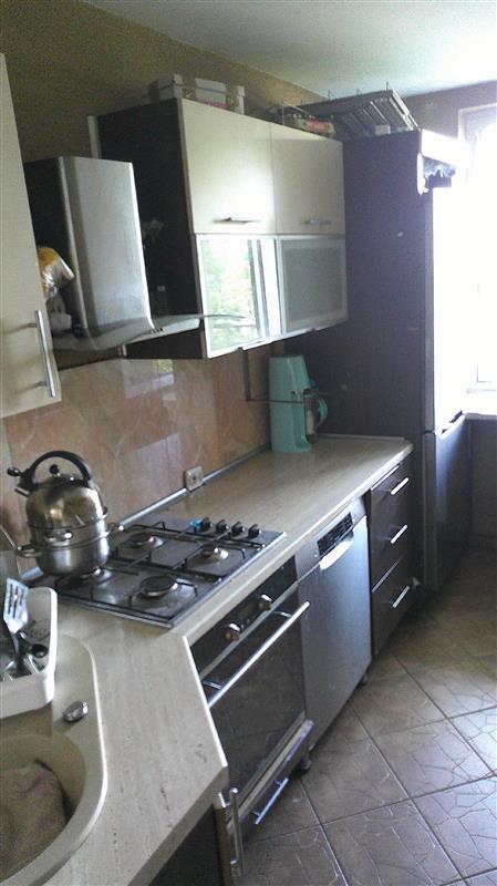 Meble modułowe z blatem MDF, płyta gazowa z piekarnikiem Amica, zlewozmywak 1-komorowy z ociekaczem, okno PCV, parapet blat MDF, grzejnik stalowy, wentylacja grawitacyjna