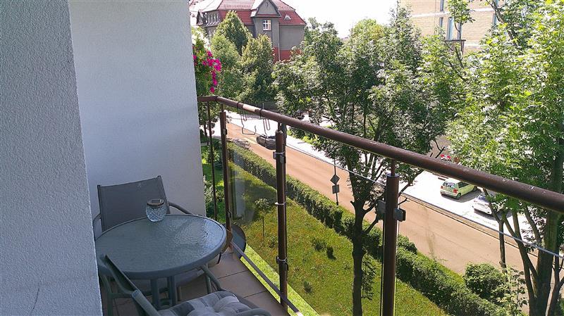 BALKON– wejście z pokoju nr 2, posadzka wyłożona płytkami, balustrada stalowa wykończona szybą