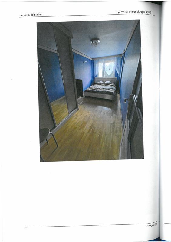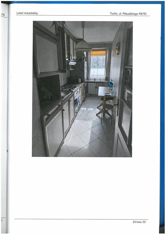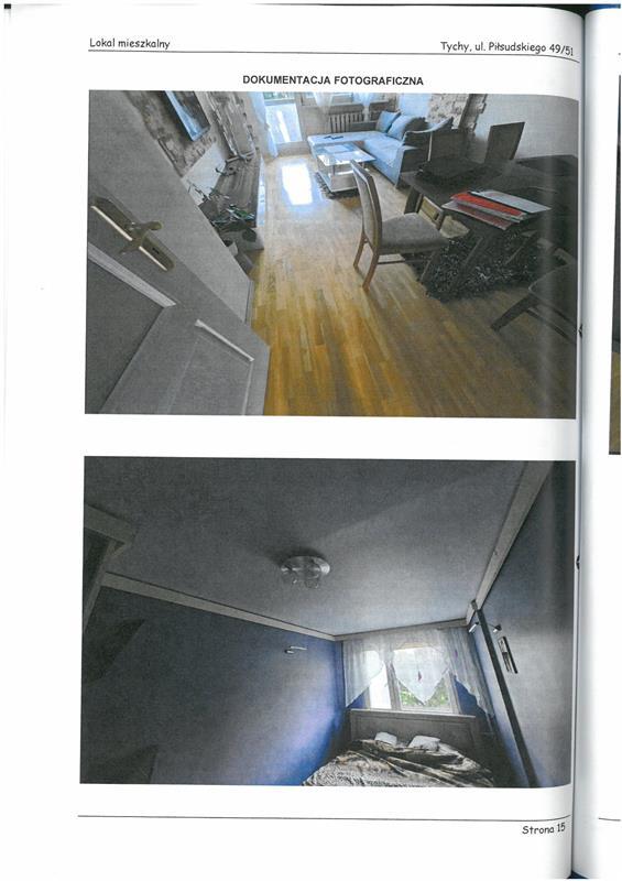 Spółdzielcze własnościowego prawa do lokalu mieszkalnego położonego w miejscowości Tychy, przy ul. Piłsudskiego 49/51 stanowiącej własność dłużnika Kowalczyk Krzysztof posiadająca założoną księgę wieczystą w Wydziale Ksiąg Wieczystych Sądu Rejonowego w Tychach o nr KA1T/00077412/1. Lokal położony jest na trzecim piętrze, składa się z trzech pokoi, kuchni, przedpokoju, łazienki z wc o łącznej pow. użytkowej 62,40 m2. Standard pomieszczeń mieszkania biegły ocenił jako - średni, stan techniczny- dobry. Układ funkcjonalny bardzo dobry.