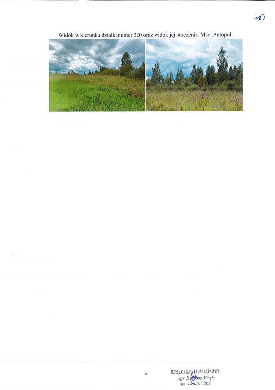 15. działki nr 316 (łąki trwałe ŁV i grunty pod rowami) o pow.1,3024 ha położonej w msc. Antopol. Suma oszacowania wynosi 22.310,00 zł, zaś cena wywołania jest równa 3/4 sumy oszacowania i wynosi 16.732,50 zł