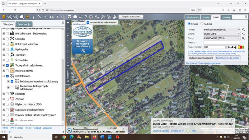 działka nr. 382 o powierzchni 1,10 ha. zabudowana budynkiem mieszkalnym jednorodzinnym o