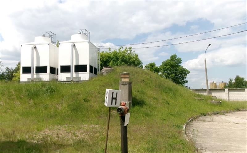 - w nasypie w północnym narożniku działki zbiornik betonowy podziemny na wodę, prawdopodobnie wybudowany do celów technologicznych, aktualne przeznaczenie nie jest znane. Przy nasypie dwie chłodnie kominowe, również wybudowane do celów technologicznych.