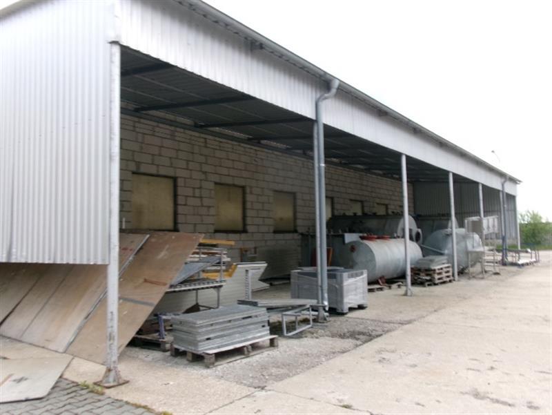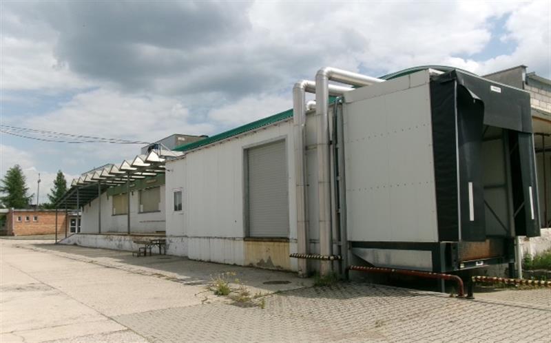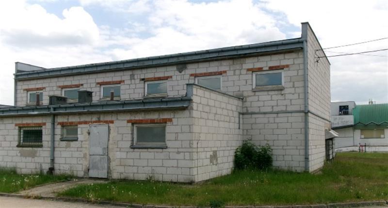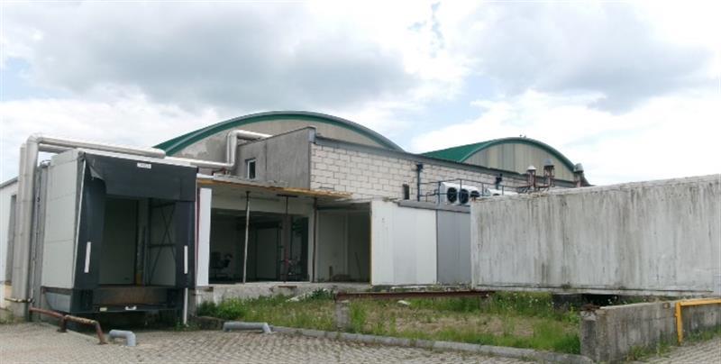 - budynek główny produkcyjny - bryła budynku wielosegmentowa, segment frontowy dwukondygnacyjny, segment produkcyjny I kondygnacyjny. Rok budowy: połowa lat 90-tych. Pomieszczenia na dzień oględzin nieużytkowane, w części w trakcie robot remontowych. Za budynkiem kilka kontenerów z płyty warstwowej, pomieszczenia z urządzeniami, głównie silniki do obsługi np. chłodni. Powierzchnia zabudowy na podstawie obmiaru 2368 m.kw. Funkcje poszczególnych kondygnacji: segment biurowo-techniczny - w skrajnej części kotłownia, sprężarkowa, część środkowa dwukondygnacyjna biurowo-socjalno-techniczna. Segment główny produkcyjny z halą produkcyjną i pomieszczeniami do obsługi hali, chłodnie, magazyny, rampa załadunkowa. Konstrukcja - segment dwukondygnacyjny: konstrukcja typowa murowana, stropy prawdopodobnie prefabrykowane, stropodach pokrycie z papy. Segment główny - konstrukcja słupowo-ryglowa, wypełnienie ścian pustak suporeks, konstrukcja dachu łukowa na konstrukcji stalowej, pokrycie płyta dachowa warstwowa, na segmentach bocznych blacha trapez lub falista. Elementy wykończeniowe: posadzki przemysłowe w pomieszczeniach produkcyjnych, płytki ceramiczne w pomieszczeniach socjalnych, wrota metalowe w części uchylne, segmentowe, okna pcv. Instalacje: wodociągowo- kanalizacyjna, ogrzewanie pomieszczeń: kocioł olejowy, dwa zbiorniki na olej. Instalacja sprężonego powietrza, instalacja wentylacji mechanicznej. Brak możliwości oceny stanu technicznego instalacji, brak danych o roku montażu. W pomieszczeniu kotłowni znajdują się także kotły Viessmanna wraz z osprzętem, pominięto w opinii, stanowią ciąg technologiczny linii produkcyjnej, zbiornik niebieski - prawdopodobnie zbiornik sprężonego powietrza, zbiornik biały - prawdopodobnie dozownik substancji technologicznej w stanie granulowanym lub sypkim. Bateria z blachy ocynkowanej to centrala wentylacyjno- grzewcza, której wielkość i przekrój kanałów wskazuje na obsługę hali produkcyjnej, może posiadać funkcję schładzania powietrza. Konstrukcja budynku na podstawie oceny cech wizualnych w dobrym stanie technicznym. Pomieszczenia biurowe w dobrym standardzie. Stan instalacji, szczególnie technologicznych, jest trudny do oceny z uwagi na fakt iż w hali nie jest prowadzona żadna produkcja i na podstawie stanu urządzeń można wnioskować iż taki stan trwa od dłuższego czasu,