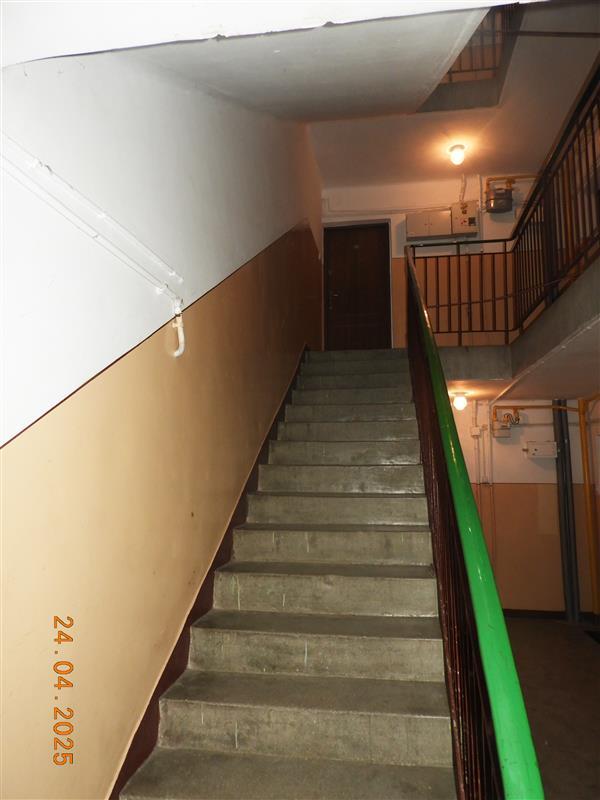 Lokal ma powierzchnię użytkową 46,43m2. Do lokalu przynależy piwnica o powierzchni 4,65m2. Lokal położony jest na III piętrze i składa się z 3 pokoi, kuchni, łazienki z wc, i przedpokoju. Dodatkowo do środkowego pokoju przylega balkon. Układ pomieszczeń w lokalu jest przeciętny. Kuchnia jest wąska, a pokój środkowy (największy) jest przechodni. ).