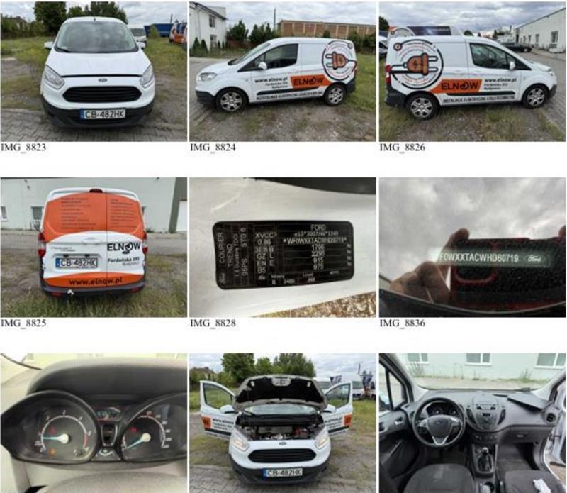 | 2 | Samochód ciężarowy Ford TRANSIT COURIER, poj. 1499,00 cm3, VIN: WF0WXXTACWHD60719, nr rej. CB482HK, rok prod. 2017, data pierwszej rejestracji: 2018.02.01 | 1 | 31 700,00 zł 25772,36 zł netto + 23% VAT | 23 775,00 zł* |