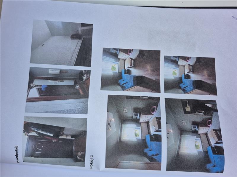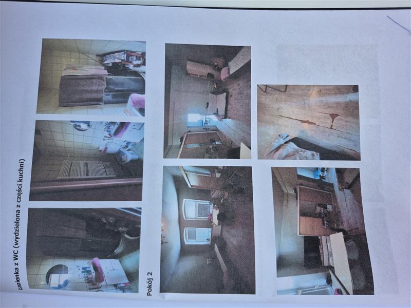 Układ pomieszczeń: wejście z przedpokoju do pokoju 1, z którego przechodzi się do pokoju 2 oraz kuchni. W kuchni znajduje się wejście do łazienki z WC (wydzielonej z części kuchni). Wejście do WC (aktualnie wykorzystywanego jako pomieszczenie składowe) z klatki schodowej.