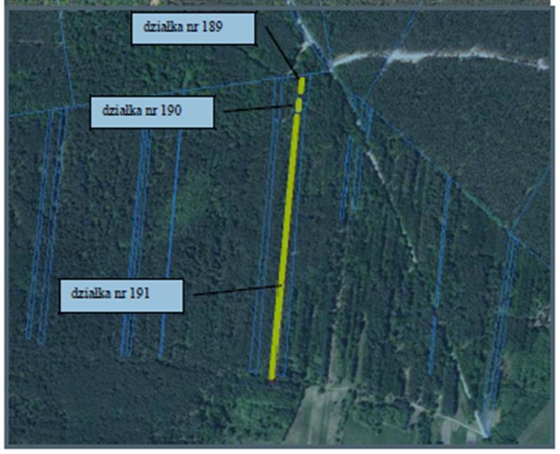 Działka numer 191 o powierzchni 0,7200 ha w kształcie prostokąta o przeciętnej szerokości frontu około 13 metrów i przeciętnej długości około 550 metrów. Działka nie jest zabudowana, nie jest ogrodzona. Na działce jest las So w wieku ~84 lat i ~54 lat. Według EG las na powierzchni całej działki.