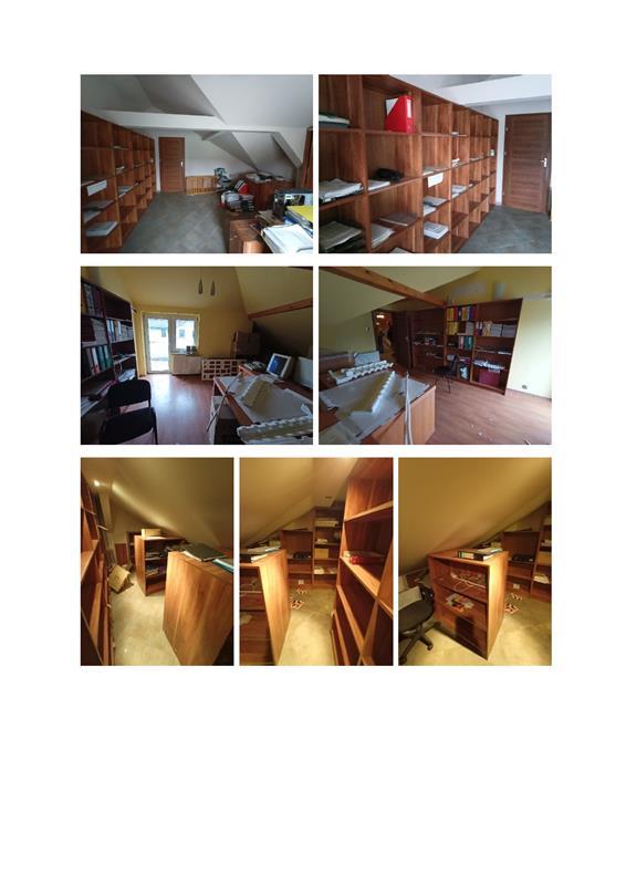 Przedmiotem licytacji jest nieruchomość, na której prawo własności składają się trzy udziały po 1/3 każdy, suma tych udziałów składa się zatem na całość własności tej nieruchomości. Egzekucja z tych udziałów prowadzona jest łącznie w jednym postępowaniu. Nabywca licytacyjny nabędzie zatem własność całości nieruchomości. --------------------------------------------------------------------------------------------------------------------------------------------------------------------------------------------------------------------------------------------------------------------------------------- Nieruchomość wybudowana została ok. 1993 r. położona jest pod adresem 63-200 Jarocin, ul. Zagonowa 49, dla której to nieruchomości Sąd Rejonowy w Jarocinie V Wydział Ksiąg Wieczystych prowadzi księgę wieczystą o numerze 20244 [NKW KZ1J/00020244/5]. Nieruchomość położona jest w Jarocinie, na osiedlu domów jednorodzinnych, w południowej części miasta, przy skrzyżowaniu ul. Zagonowej i ul. Gajowej (adres administracyjny ul. Zagonowa 49), powiat jarociński, województwo wielkopolskie. Sąsiedztwo nieruchomości stanowi zabudowa mieszkaniowa jednorodzinna z towarzyszącą zabudową gospodarczo – garażową oraz miejscowo usytuowana zabudowa usługowo-handlowa. Dojazd do nieruchomości stanowi droga o nawierzchni utwardzonej asfaltem z pasem chodnika. W odległości ca 350 m od przedmiotu wyceny przebiega droga krajowa nr 12 (biegnąca w kierunku Kalisza), łącząca się z drogą krajową nr 11 (biegnącą w kierunku Poznania) oraz drogą krajową 15 (biegnąca w kierunku Wrocławia). Nieruchomość ma urządzoną księgę wieczystą nr KZ1J/00020244/5 prowadzoną przez Sąd Rejonowy w Jarocinie V Wydział Ksiąg Wieczystych. Przedmiotowa nieruchomość składa się z działki ewidencyjnej nr 1040 o powierzchni 0,1230 ha i kształcie zbliżonym do prostokąta. Nieruchomość zabudowana jest jednorodzinnym budynkiem mieszkalnym z dwoma garażami w bryle budynku. Działka ewidencyjna nr 1040 usytuowana jest przy skrzyżowaniu ul. Zagonowej i ul. Gajowej (adres administracyjny ul. Zagonowa 49). Wjazd do jednego z garaży znajduje się od ul. Zagonowej, do drugiego z garaży od ul. Gajowej, wjazd na teren nieruchomości urządzony został od strony ul. Zagonowej. Program użytkowy: • piwnica: klatka schodowa, korytarz, 3 pomieszczenia gospodarcze, kotłownia, spiżarnia, garaż 2, • przyziemie: pomieszczenie składowe (dawniej wykorzystywane jako pomieszczenie użytkowe na potrzeby prowadzonej działalności gospodarczej – z osobnym wejściem z terenu posesji), pomieszczenie gospodarcze, garaż 1, pomieszczenie socjalne, WC, korytarz (wejście z korytarza na poddasze użytkowe – klatka schodowa 1), hol, salon (z wyjściem na taras), kuchnia z jadalnią, spiżarnia, WC, pokój, wiatrołap, gabinet, • poddasze: korytarz (4 częściowy), 8 pokoi (w tym jeden z łazienką z WC; 5 pokoi z wyjściem na balkon), pomieszczenie gospodarcze, pomieszczenie socjalne, łazienka z WC, klatka schodowa 2, Powierzchnia użytkowa budynku mieszkalnego: 458,5 m2, gdzie powierzchnię pomieszczeń o wysokości powyżej 2,20 m liczy się w 100%, powierzchnię pomieszczeń o wysokości od 1,40 m do 2,20 m liczy się w 50%, powierzchnię pomieszczeń poniżej 1,40 m nie wlicza się do powierzchni pomieszczenia