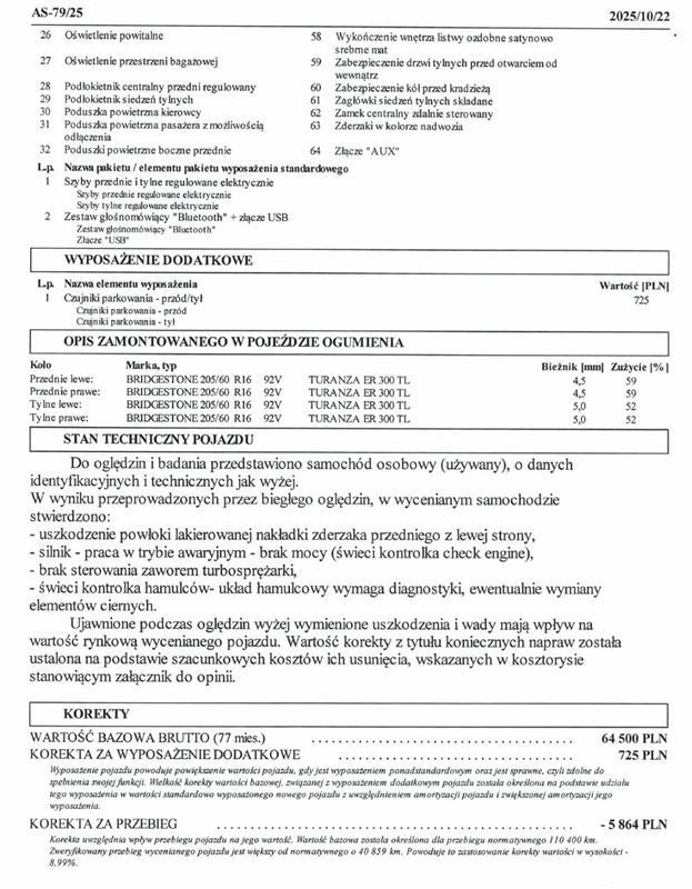 Podczas oględzin ww. pojazdu biegły stwierdził: