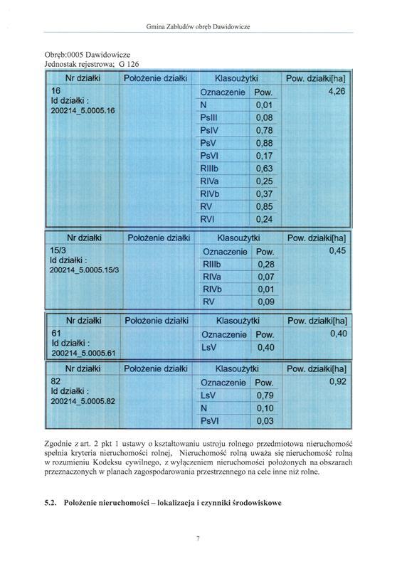 udział 3/4 w działce ewidencyjnej o numerze 16 o obszarze 4,26 ha, grunty orne, umową z dnia 29.11.2020r. nieruchomość została wydzierżawiona na okres 10 lat do dnia 22.02.2031r. Zgodnie z art. 1002 kpc, z chwilą uprawomocnienia się postanowienia o przysądzeniu własności nabywca wstępuje w prawa i obowiązki dłużnika wynikające ze stosunku najmu i dzierżawy stosownie do przepisów prawa normujących te stosunki w wypadku zbycia rzeczy wynajętej lub wydzierżawionej. W przypadku gdy umowa najmu lub dzierżawy nieruchomości zawarta była na czas oznaczony dłuższy niż dwa lata, nabywca może wypowiedzieć tę umowę, w ciągu miesiąca od uprawomocnienia się postanowienia o przysądzeniu własności, z zachowaniem rocznego terminu wypowiedzenia, o ile umowa nie przewiduje terminu krótszego, chociażby umowa została zawarta z zachowaniem formy pisemnej i z datą pewną, a rzecz została najemcy lub dzierżawcy