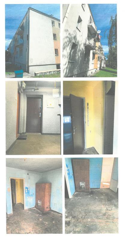 Lokal mieszkalny znajduje się w budynku wielorodzinnym na 1 piętrze (II kondygnacja). Lokal o powierzchni 34,92 m2, składa się z pokoju, przedpokoju, kuchni, łazienki z WC. Do lokalu przynależy piwnica o powierzchni 4,87 m2.