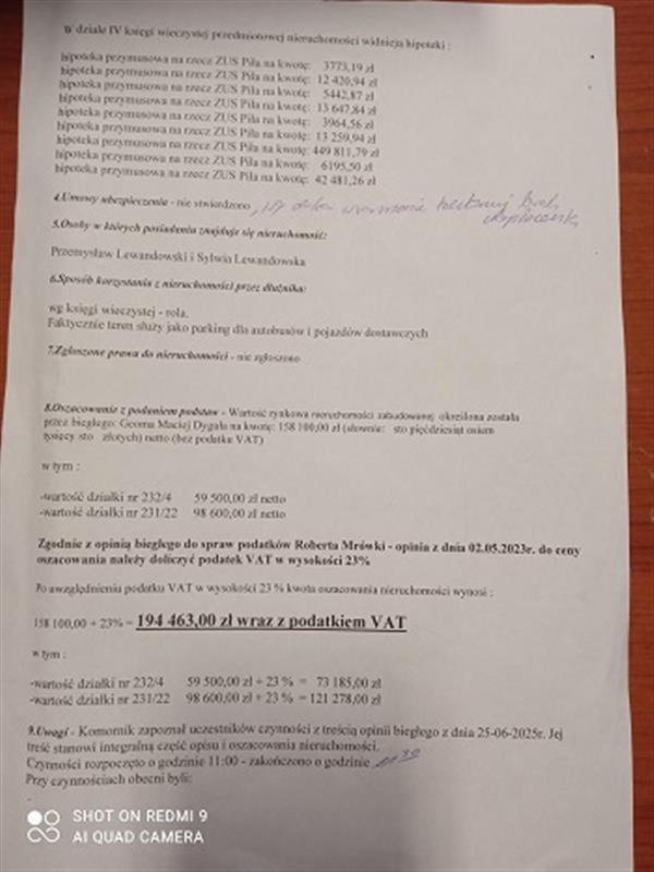 Działki 232/4 i 231/22 stanowią całość funkcjonalno-użytkową o łącznej powierzchni 0,1057 ha. Kształt działek regularny, prostokątny. Ukształtowanie terenu płaskie. Działki wykorzystywane jako teren parkingu dla samochodów dostawczych i autobusów - na dzień sporządzania protokołu opisu i oszacowania. Obszar w części ogrodzony płotem panelowym na słupkach metalowych i cokole betonowym. Pojedyncze zakrzewienia nie wpływające na wartość nieruchomości.
