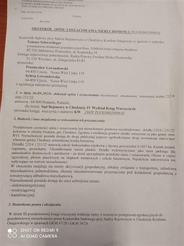 Kancelaria Komornika Sądowego przy Sądzie Rejonowym w Chodzieży Kordiana Ostajewskiego na podstawie art. 953 ustawy z dnia 17 listopada 1964 r. Kodeks postępowania cywilnego (dalej: kpc) podaje do publicznej wiadomości, że w sprawie GKM 47/20 w dniu 06-03-2026 o godz. 11:00 pod adresem: Sąd Rejonowy w Chodzieży (budynek Sekretariatu Wydziału Cywilnego), Krasińskiego 8, 64-800 Chodzież, pokój 4 , odbędzie się pierwsza licytacja:
