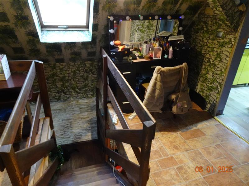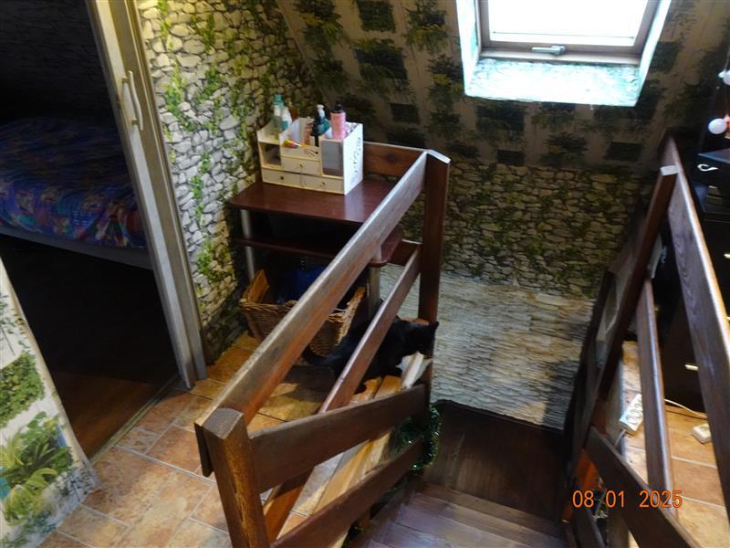 Lokal wyposażony w instalacje wodno-kanalizacyjną - szambo, elektryczną, ogrzewanie bezpośrednio z kominka – nawiew grawitacyjny, stolarka okienna pcv i drewniane okna połaciowe, stolarka drzwiowa typowa, podłogi- panele podłogowe, wykładzina PCV, tynki gładkie, malowanie.