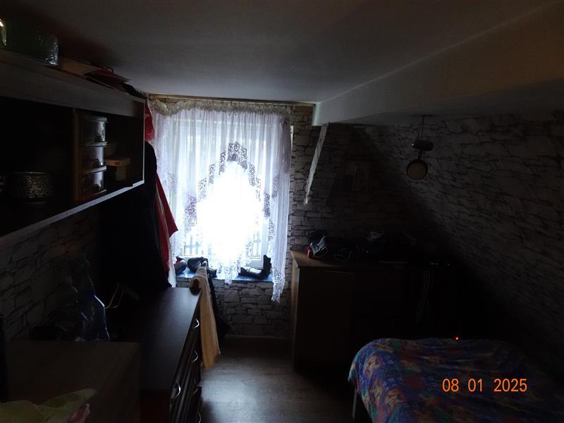 Lokal mieszkalny nr 2 położony w budynku mieszkalnym dwurodzinnym , podpiwniczony , fundamenty kamienne, ściany murowane, stropy masywne nad piwnicami i drewniane pozostałe, schody z parteru na piętro drewniane, dach o konstrukcji drewnianej, pokryty blachodachówką, tynki gładkie. Posadzki i podłogi: panele podłogowe, płytki ceramiczne, pcv/lentex. Okna pcv i drewniane połaciowe. Instalacje: elektryczna, ogrzewanie dla całego lokalu z kominka nieobudowanego z rozprowadzeniem grawitacyjnym. Wodociąg miejski, kanalizacja do szamba. Budynek objęty ochroną konserwatorską – gminna ewidencja zabytków . Lokal mieszkalny nr 2 położony na I i II kondygnacji o powierzchni: Pu = 59,96 m2 , Pc = 76,36 m2. Lokal składa się z 4 pokoi, kuchni, łazienki z wc oraz ganku. Do