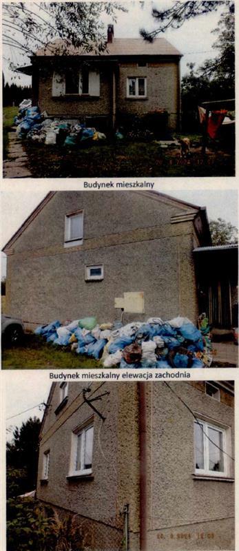 Działka ewid. nr 641/2 o pow. 0,0613ha stanowi drogę w całości, zlokalizowana jest na południe od drogi gminnej, stanowi drogę dojazdową do zabudowy znajdującej się na działce nr 641/3. Działka posiada długość ok. 200 m jej szerokość wynosi od 2,70 do 6,60 m. Fragment początkowy przy drodze gminnej jest utwardzony żwirem, w dalszej części działka posiada utwardzone żwirem koleiny. Przez działkę przebiegają sieci uzbrojenia co nie wpływa na jej funkcjonowanie jako drogi dojazdowej.Działka ewid. nr 641/3 o pow. 0,5239 ha stanowi w części północno-wschodniej teren wolny od zabudowy stanowiący powierzchnię ok. 0,19 ha, stanowi użytek zielony, teren ten możliwy jest do wydzielenia oraz zabudowy. Część południowo-zachodnia działki jest zabudowana budynkiem mieszkalnym, garażem oraz budynkiem gospodarczym. Fragment południowo-zachodni działki od budynku gospodarczego do cieku wodnego, który stanowi granice działki, jest zadrzewiony i zakrzaczony. Teren działki jest uzbrojony w sieci: kanalizacyjną, elektryczną, gazową na działce znajduje się indywidualne ujęcie wody. Teren przy budynku jest fragmentarycznie ogrodzony, ogrodzenie z siatki metalowej na słupkach stalowych przy garażu znajduje się utwardzenie podjazdu, wykonane z kruszywa mineralnego, widoczne jest również utwardzenie dojścia z budynku mieszkalnego do budynku gospodarczego, wykonane z betonu. Budynek mieszkalny: zlokalizowany na działce nr 641/3 jest obiektem parterowym, podpiwniczonym w całości, ze strychem użytkowym. Dach na budynku wykonano jako dwuspadowy z pokryciem z blachy faliste, malowanej. Budynek z lat 70 - tych, murowany posadowiony na fundamentach betonowych, ściany piwnic są betonowe. Ściany parteru oraz strychy są murowane z cegły, strop nad parterem jest płytowy żelbetowy. Dach na budynku jest dwuspadowy o konstrukcji drewnianej, pokrycie dachu wykonano z blachy falistej, malowanej, rynny dachowe i rury spustowe są wykonane z blachy ocynkowanej, malowanej. Elewacja budynku jest wykonana tynkiem cyklinowanym. W budynku zamontowano okna z profili pvc. Na działce w sąsiedztwie budynku mieszkalnego znajduje się garaż murowany, posadowiony na fundamentach betonowych. Ściany budynku są murowane, stropodach wykonano jako płytę żelbetową z pokryciem z blachy. W budynku zamontowano bramę garażową, dwuskrzydłową, drewnianą, okna drewniane zespolone. Elewacja budynku jest wykonana tynkiem gładkim. Budynek gospodarczy: pierwotnie mieścił część mieszkalną i gospodarczą. Jest to obiekt parterowy, posadowiony na podmurówce kamiennej, o ścianach wieńcowych wykonanych z bali drewnianych. Strop nad częścią mieszkalną jest drewniany, belkowy, dach wykonano łącznie nad oboma częściami budynku o konstrukcji drewnianej, z pokryciem z blachy falistej ocynkowanej. W budynku zamontowano okna drewniane, drzwi drewniane, bramy do części gospodarczej są drewniane deskowe.