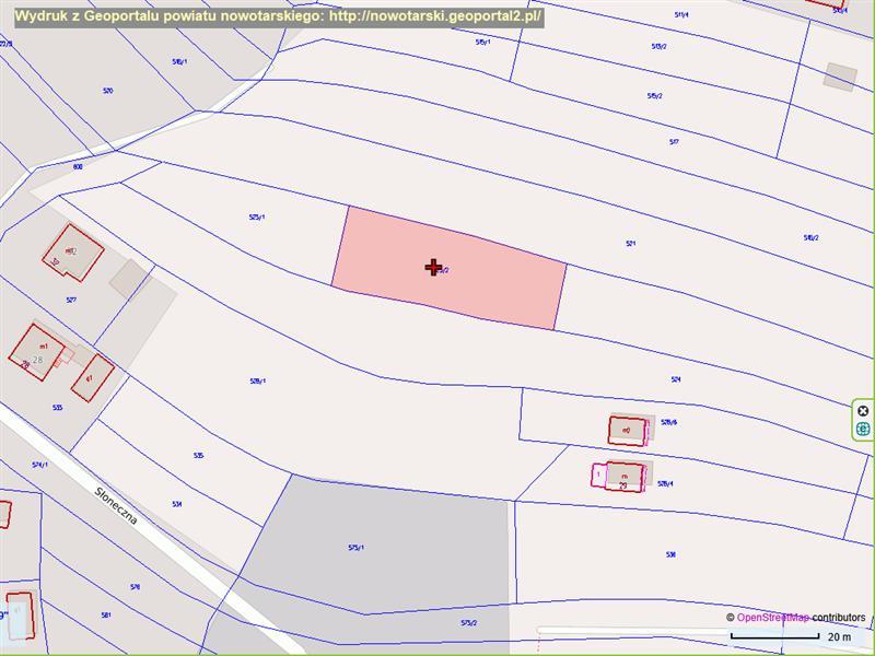 Działka ewidencyjna nr 523/2 ma kształt regularny, długość ok. 51,5 m - 52 m, szerokość ok. 15,5 m - 19 m. Teren lekko nachylony w kierunku północno-zachodnim. Działka niezabudowana, porośnięta roślinnością trawiastą i pojedynczymi krzewami. Uzbrojenie: działka jest nieuzbrojona; w odległości ok. 160 m (wzdłuż drogi - ul. Rozwojowej) przebiega sieć elektroenergetyczna niskiego napięcia, wodna i kanalizacyjna; w odległości ok. 35 m w kierunku zachodnim przebiega sieć kanalizacyjna; w odległości ok. 50 m w kierunku południowo-wschodnim przebiegają sieci: elektroenergetyczna niskiego napięcia, wodna i kanalizacyjna. Dojazd drogą o nawierzchni asfaltowej (działka ewid. nr 297, która zgodnie z danymi EGiB znajduje się we władaniu samoistnym Gminy Czorsztyn), kolejno na odcinku ok. 162 m po działce ewid. nr 523/3 - prawo do korzystania zapewnione poprzez służebność gruntową ujawnioną w dziale I-Sp. kw nr NS1T/00045629/6 - droga nieurządzona o szerokości 3,5 m oraz dojazd możliwy od strony zachodniej (działka ewid. nr 600, która zgodnie z danymi EGiB znajduje się we władaniu samoistnym Gminy Czorsztyn), kolejno na odcinku ok. 44 m po działce ewid. nr 523/1 - prawo do korzystania zapewnione poprzez służebność gruntową ujawnioną w dziale I-Sp. kw nr NS1T/00045629/6 - droga nieurządzona o szerokości 3,5 m.