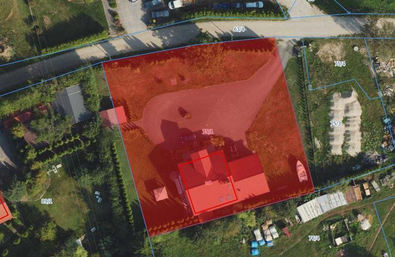 Pod względem obszarowym działka nr 75/1 zajmuje powierzchnię 1700m2. Kształt działki dość regularny, o korzystnym stosunku boków. Teren w miarę płaski. Działka zabudowana jest budynkiem mieszkalnym jednorodzinnym, a także budynkiem garażowo – gospodarczym – nieujawnionym w kartotece budynków. Na działce znajduje się również wiata na drewno. Pozostały teren o nawierzchni naturalnej trawiastej, z nasadzeniami drzew i krzewów ozdobnych. Plac manewrowy, wjazd na działkę oraz ciągi piesze utwardzone kruszywem. Działka częściowo ogrodzona ogrodzeniem stalowym na słupkach murowanych, częściowo ogrodzeniem panelowym na słupkach stalowych. Przy ogrodzeniu teren działki obsadzony tujami. Część ogrodzenia wychodzi po za granicę przedmiotowej działki tj. na działkę nr 75/3 i 89/1. Dojazd do działki zapewniony jest z drogi gminnej publicznej Nr 169036N o nawierzchni gruntowej (dz. nr 63/4). W bezpośrednim sąsiedztwie znajduje się zabudowa mieszkalno – gospodarcza wsi oraz tereny niezabudowane. Wyposażenie nieruchomości w infrastrukturę techniczną: woda, energia elektryczna, kanalizacja.