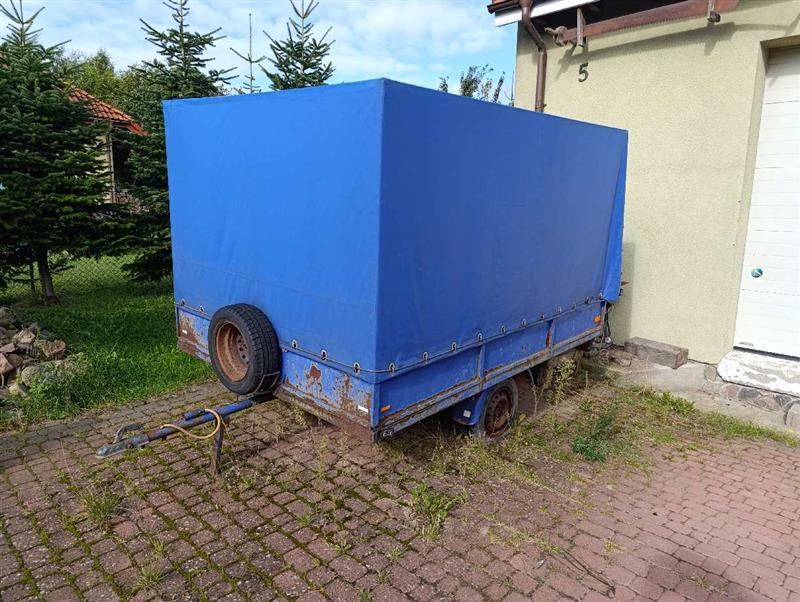 | 5 | Przyczepa 1-osiowa z plandeką, burty metal kol. niebieski, bez dokumentów i oznaczeń | 1 | 800,00 zł | 600,00 zł |