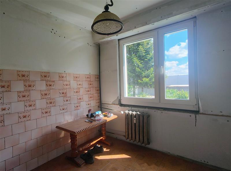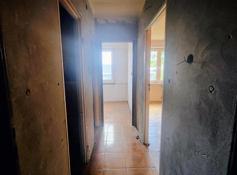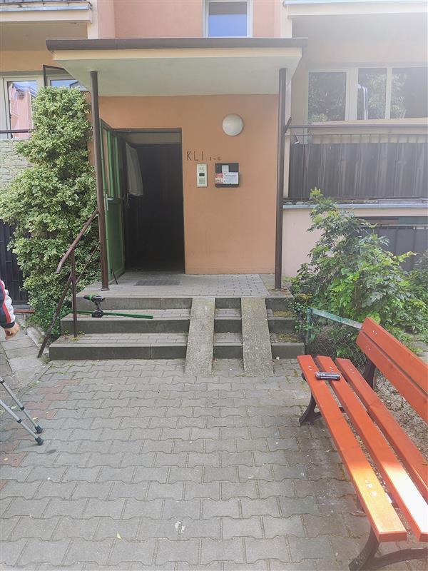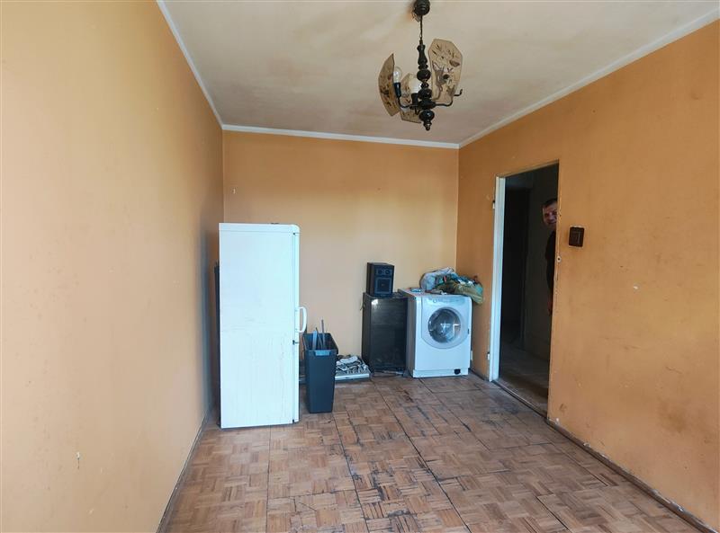 Dodatkowe informacje: okna i drzwi balkonowe PCV; drzwi wewnętrzne płytowe; drzwi zewnętrzne drewniane starego typu; podłogi wyłożone klepką drewnianą w pokojach, natomiast w kuchni, korytarzu, łazience oraz w WC podłogi wyłożone terakotą; ściany w korytarzu przygotowane do remontu, zdjęta boazeria; ściany w pokojach malowane farbą, w kuchni, łazience i WC malowane farbą w części ścian w kuchni, łazience i WC glazura; sufity malowane farbą; kuchnia brak wyposażenia; łazienka oraz WC podstawowe wyposażenie; parapety PCV; grzejniki żeliwne. Standard wykończenia lokalu typowy dla lat 80-90 XX wieku, ocenia się jako niezadowalający, wskazany remont. Budynek i lokal mieszkalny wyposażone są w następujące instalacje: wodociągowo-kanalizacyjna, centralne ogrzewanie, ciepła woda z bojlera, elektryczna, domofon.