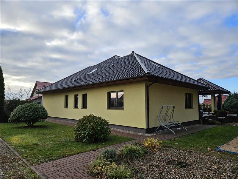 Budynek składa się z 4 pokoi, kuchni, 2 łazienek, 1 wc, sień, hall, pralnia, pomieszczenie gospodarcze, garaż