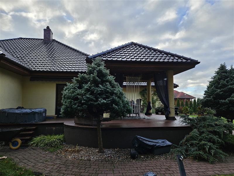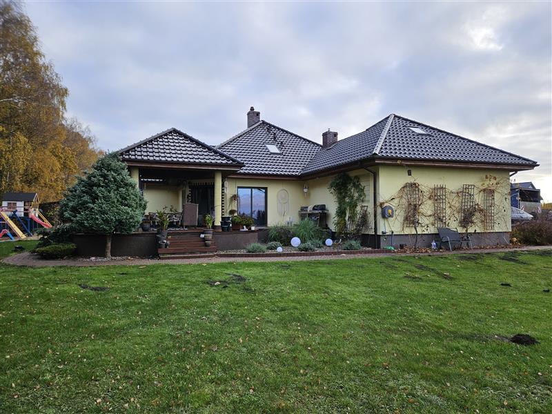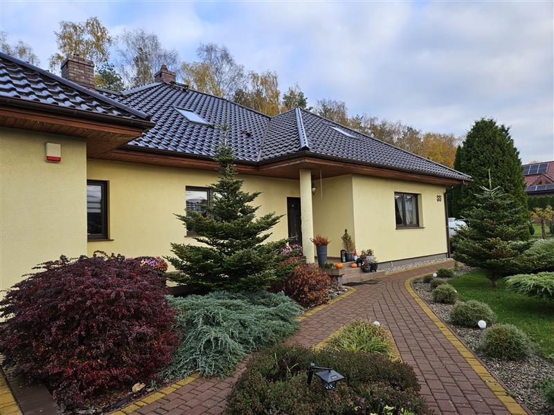 Sprzedaż dotyczy udziału 1/2 w części nieruchomości gruntowej zabudowanej nr działki 341/2 i 341/1 położona położonej pod adresem: 72-100 MARSZEWO, MARSZEWO 55, dla której Sąd Rejonowy w Goleniowie V Wydział Ksiąg Wieczystych prowadzi księgę wieczystą o numerze SZ1O/00041189/6 o łącznej powierzchni 0,2102 ha. Na terenie w/w działek posadowiony jest budynek mieszkalny w zabudowie wolnostojącej, niepodpiwniczony, parterowy z poddaszem nieużytkowym (z możliwością adaptacji na cele mieszkalne) z wbudowanym garażem dwustanowiskowym o powierzchni zabudowy 258 m2 oraz powierzchni użytkowej 217,12 m2. Pozostały niezabudowany teren działek w części utwardzony kostką betonową (ciągi pieszo – jezdne) w części zagospodarowany trawnikiem z licznymi nasadzeniami krzewów ozdobnych. Teren posesji odgrodzony od działek sąsiednich, ogrodzenie od strony frontowej stalowe z pozostałych stron z siatki. na terenie działek zlokalizowane jest palenisko, drewutnia oraz plac zabaw. Uzbrojenie działki w urządzenia infrastruktury technicznej: energia elektryczna, woda - sieć, kanalizacja – sieć, gaz – zbiornik naziemny (2 tys. litrów). Dojazd do działek gruntu o numerach 341/1, 341/2 drogą o nawierzchni utwardzonej (działka numer 32/3 która stanowi własność Powiatu Goleniowskiego) z koniecznością przejazdu odcinka około 200 m drogą o nawierzchni szutrowej (droga wewnętrzna oznaczona numerem 341/8). Budynek mieszkalny jednorodzinny w zabudowie wolnostojącej, niepodpiwniczony, parterowy z poddaszem nieużytkowym (z możliwością adaptacji na cele mieszkalne) z wbudowanym garażem dwustanowiskowym zrealizowany w technologii tradycyjnej na przełomie lat 2007/2008 r. Główne wejście do budynku oraz wjazd do garażu urządzone zostało od strony południowej. Od strony elewacji północnej urządzono wyjście na taras zewnętrzny. Parametry techniczno – użytkowe: powierzchnia zabudowy (wg. danych ewidencyjnych): 258 m2; powierzchnia użytkowa (wg. dokumentacji projektowej): 217,12 m2;